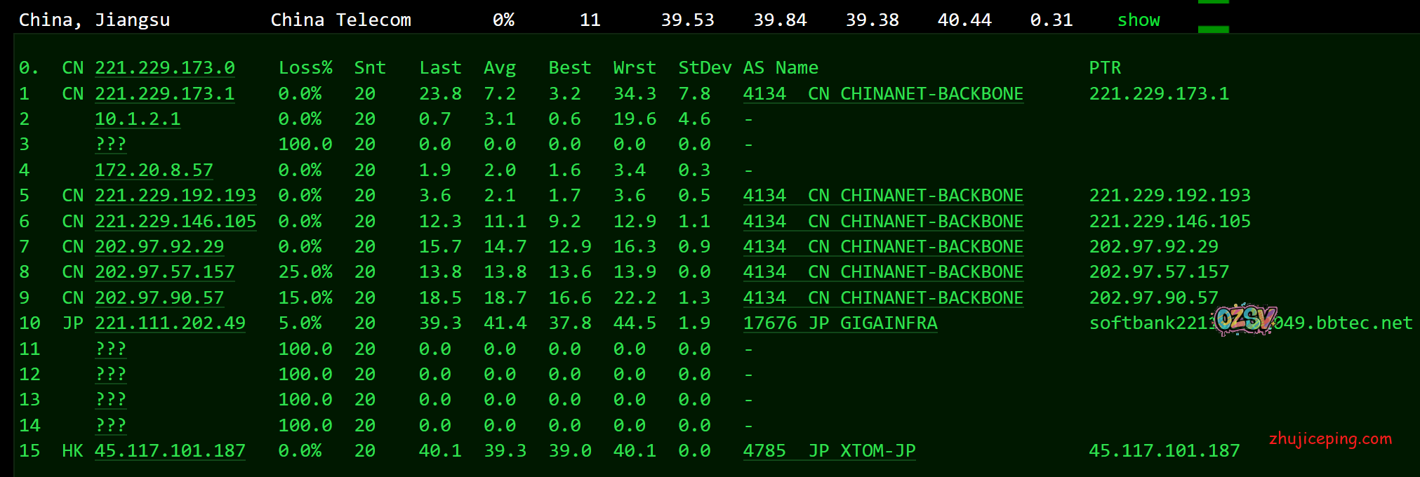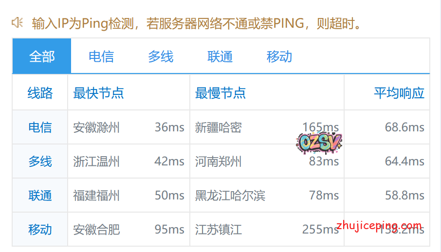 ping.chinaz.com提供的国内超过120个节点的ping测试数据: