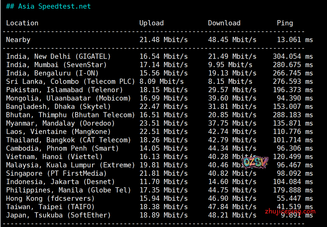 跑亚洲区域的国家和地区的效果也还是可以的: