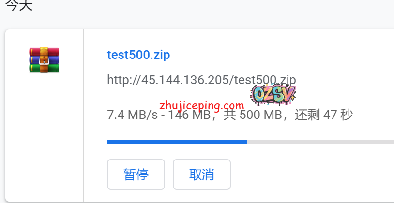 存放在测试vps上的文件,广州电信,本地Chrome浏览器下载速度如下: