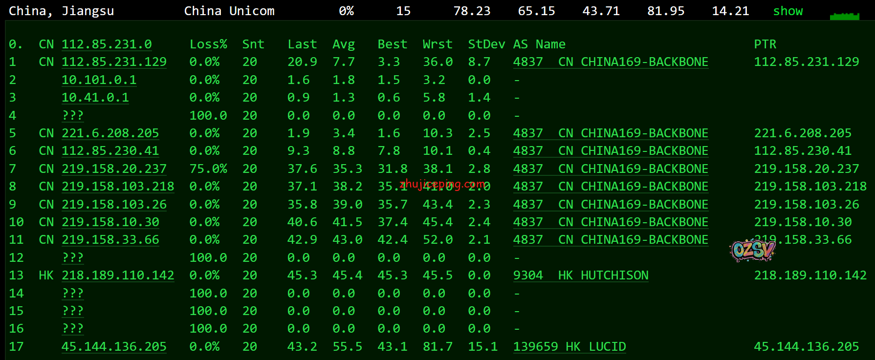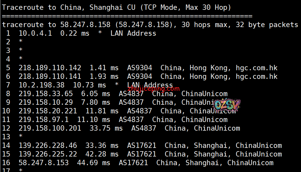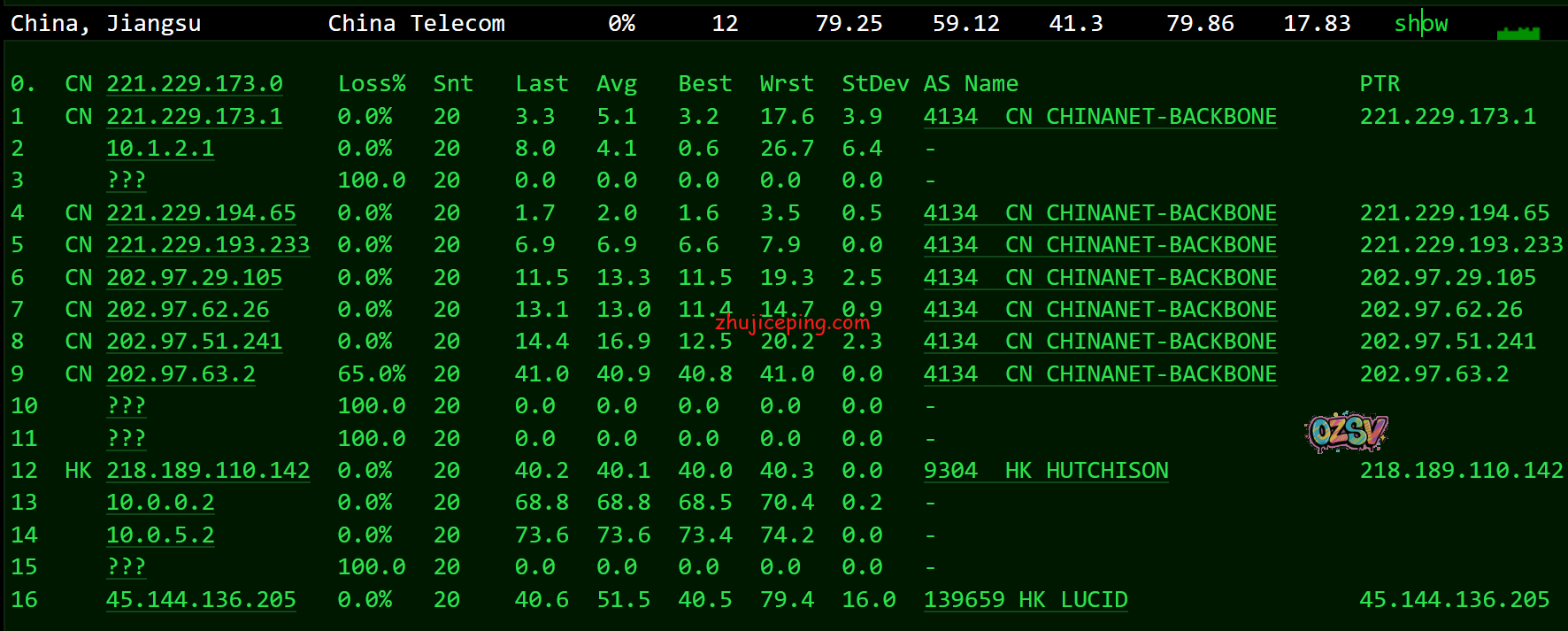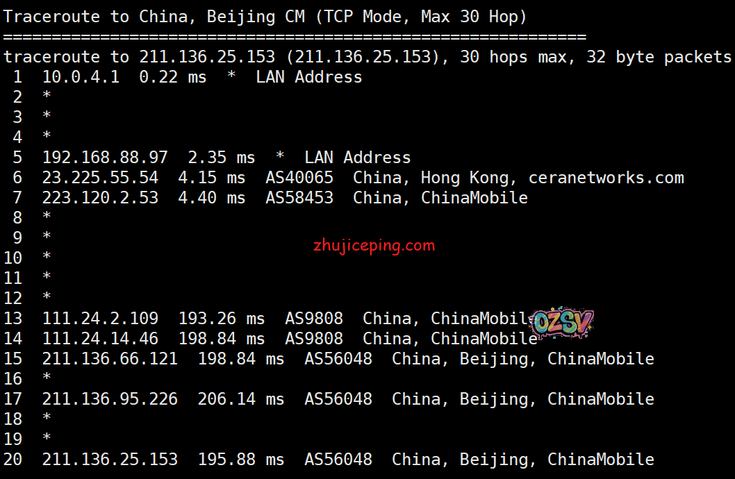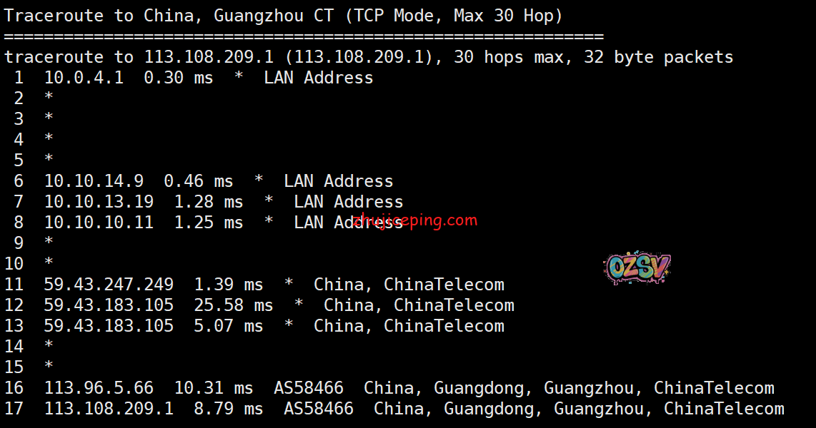 回程,到国内电信:上海、北京方向直连,广州方向走了CN2