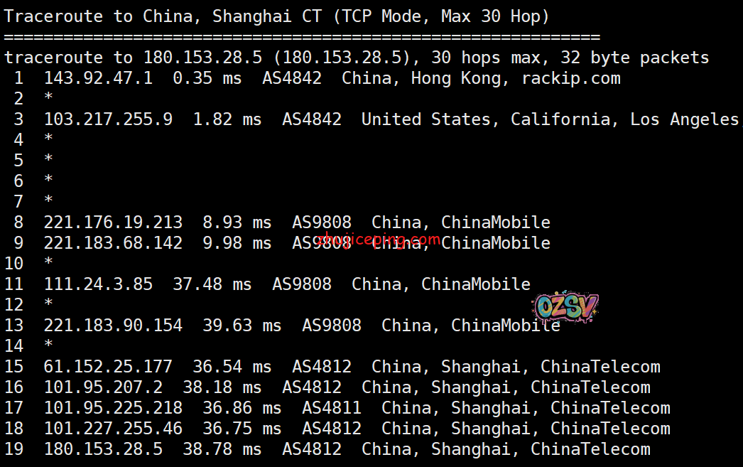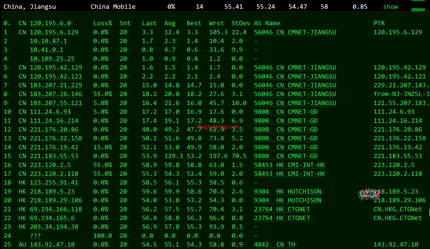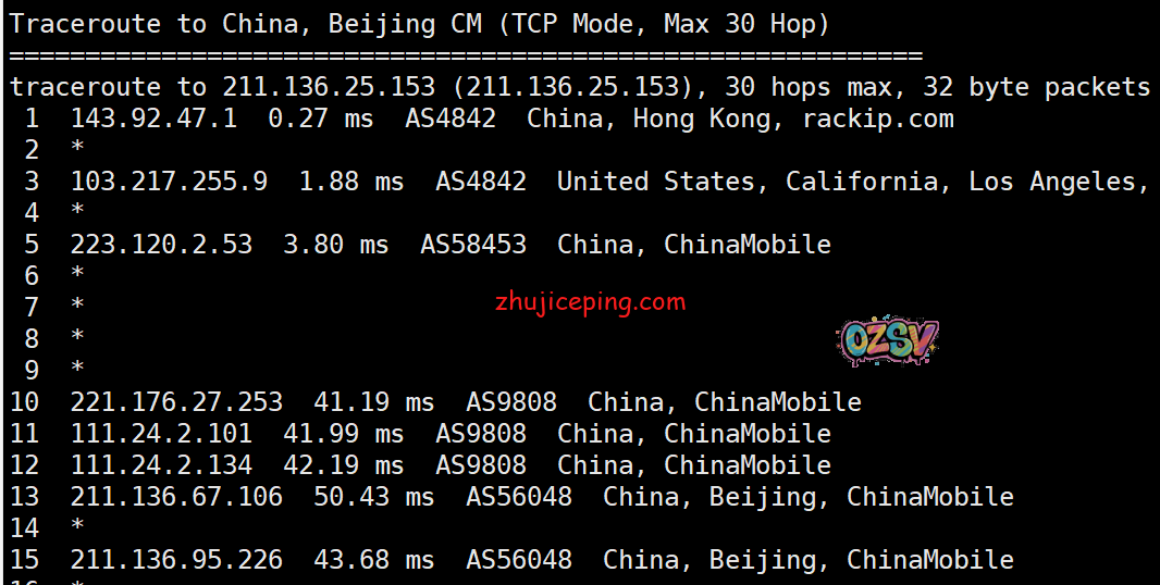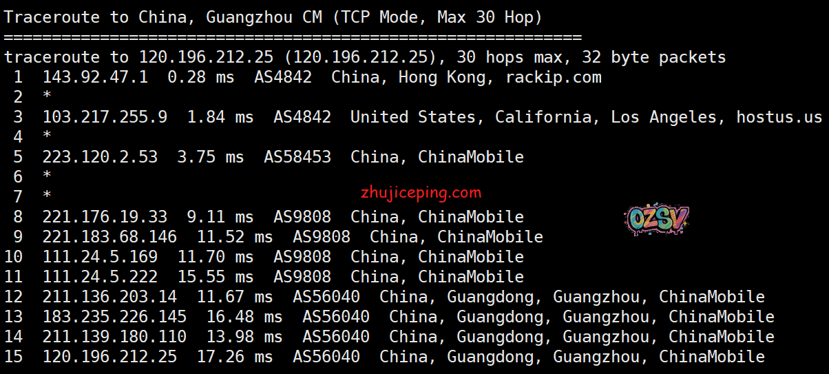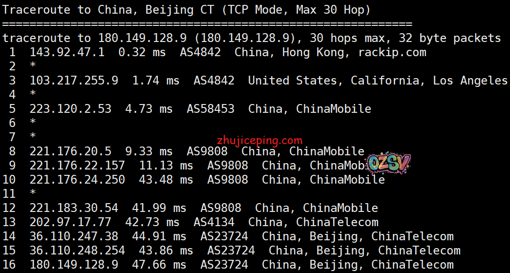总结下:去程站长测试的时候走的是cn2(移动的CMI例外),回程三网都是走的移动的直连链路,目前看起来应该是不错的
