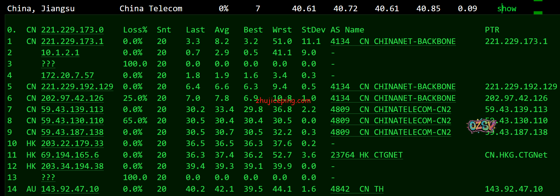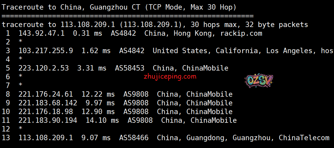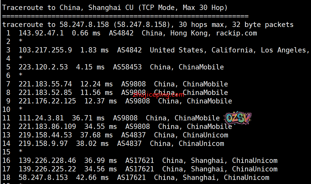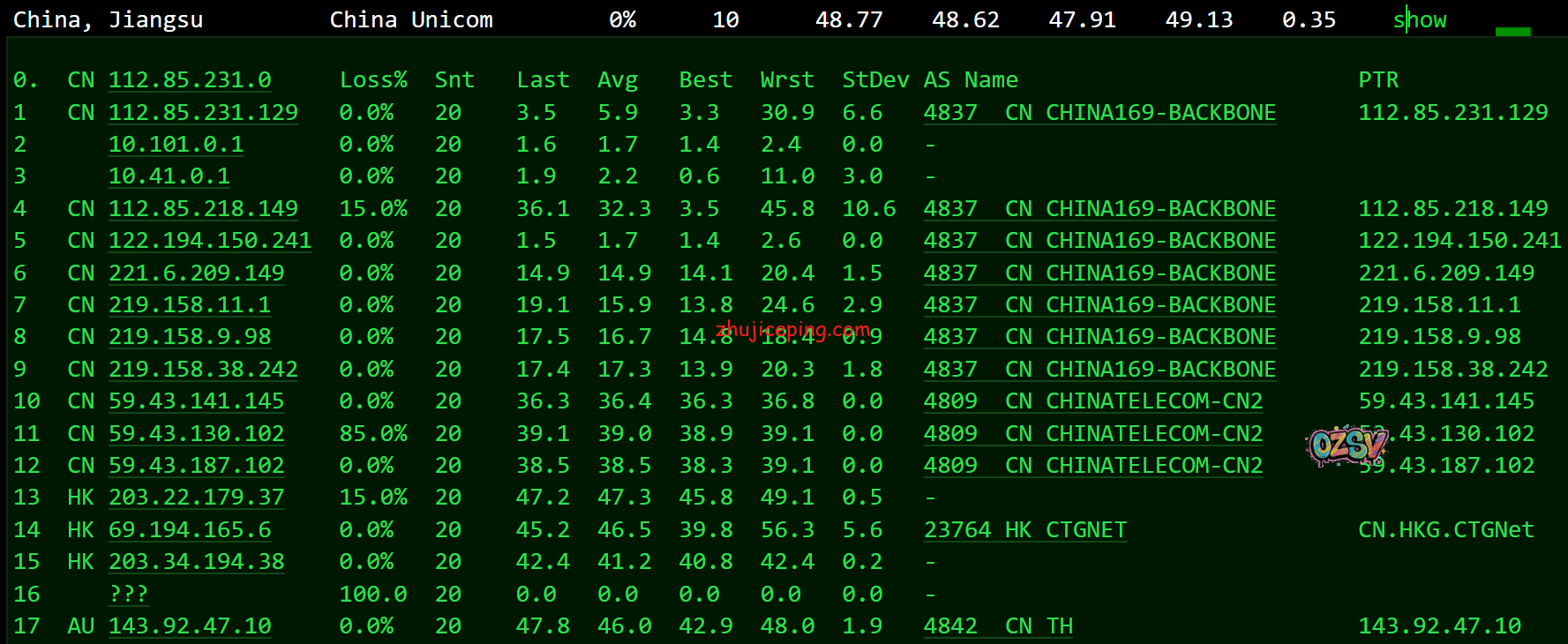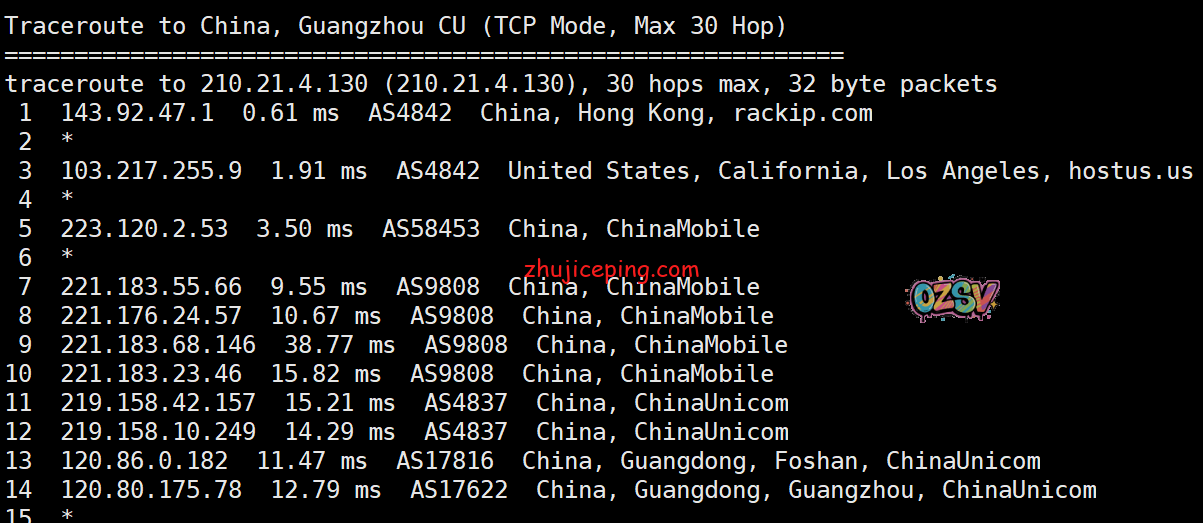 总结下:去程站长测试的时候走的是cn2(移动的CMI例外),回程三网都是走的移动的直连链路,目前看起来应该是不错的