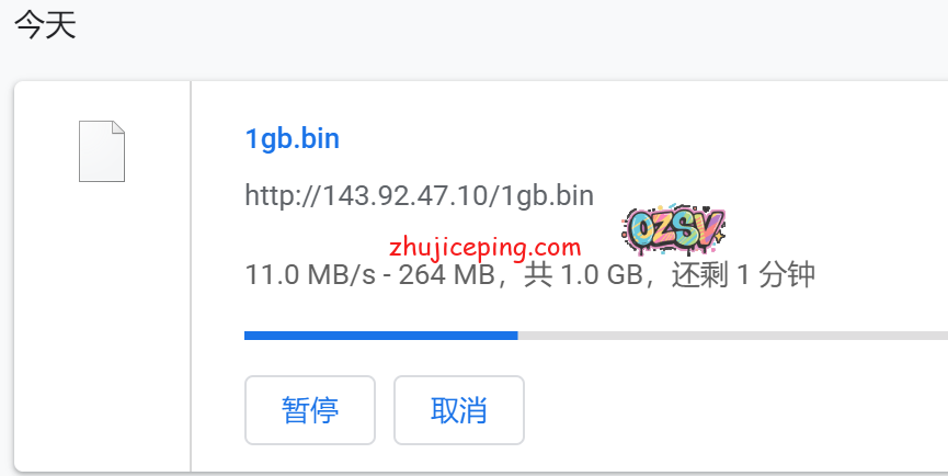 站长本地是广州电信,Chrome浏览器下载测试VPS上的文件,速度如下,几乎是接近跑满VPS的带宽: