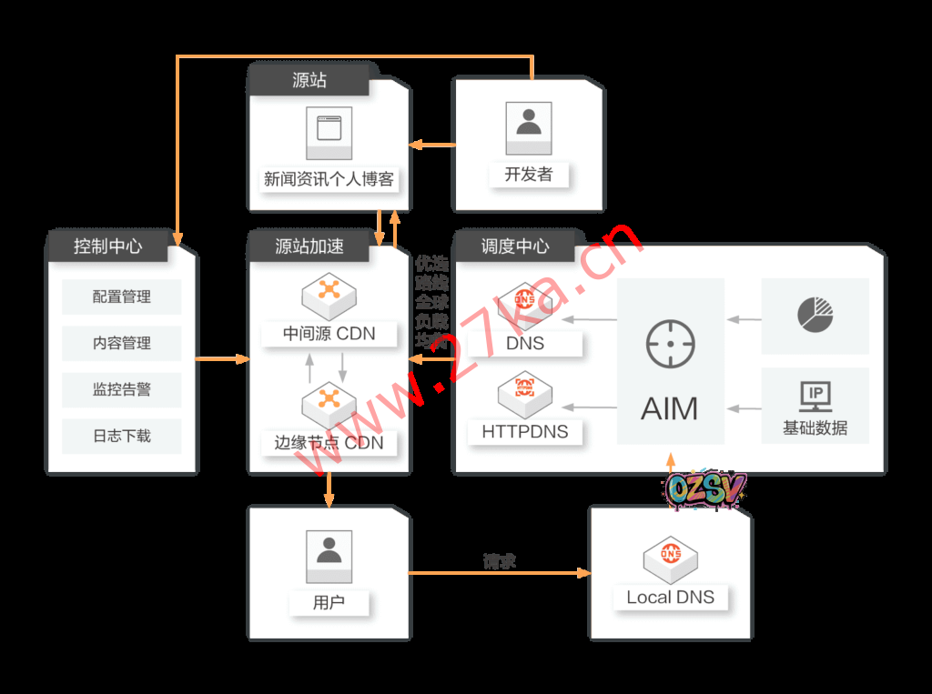 - 精准的调度系统:实时获取CDN节点的健康状况,并根据用户所在位置和运营商来分配最佳接入节点,以便取得最佳接入效果。