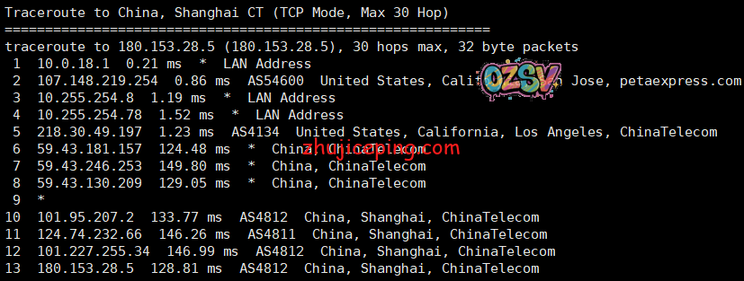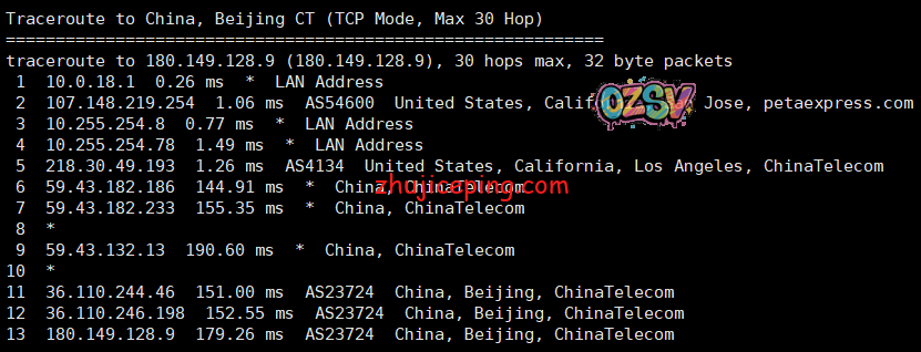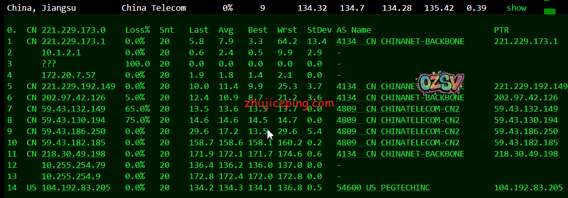 回程,到国内电信:到北京、上海、广州方向都是走CN2