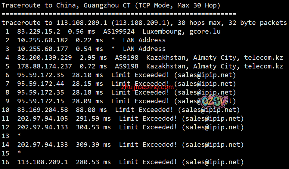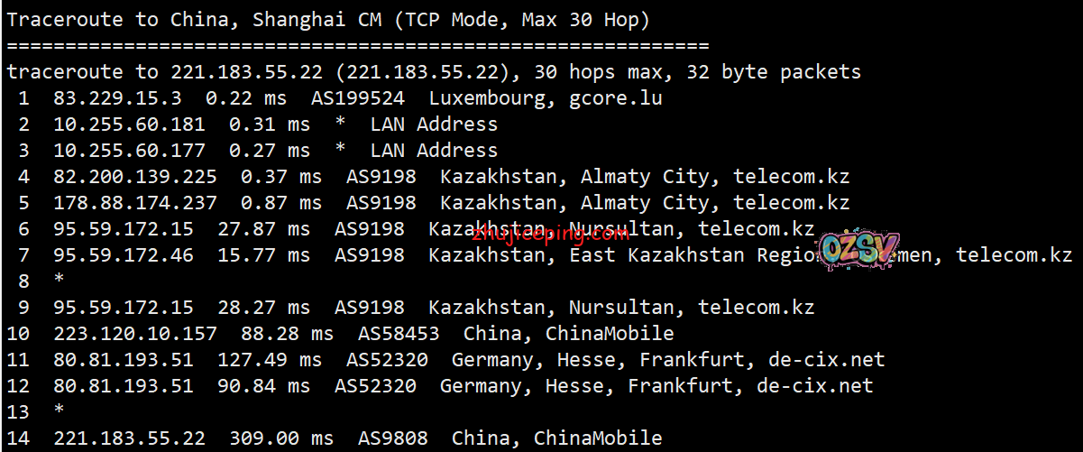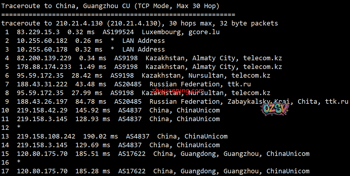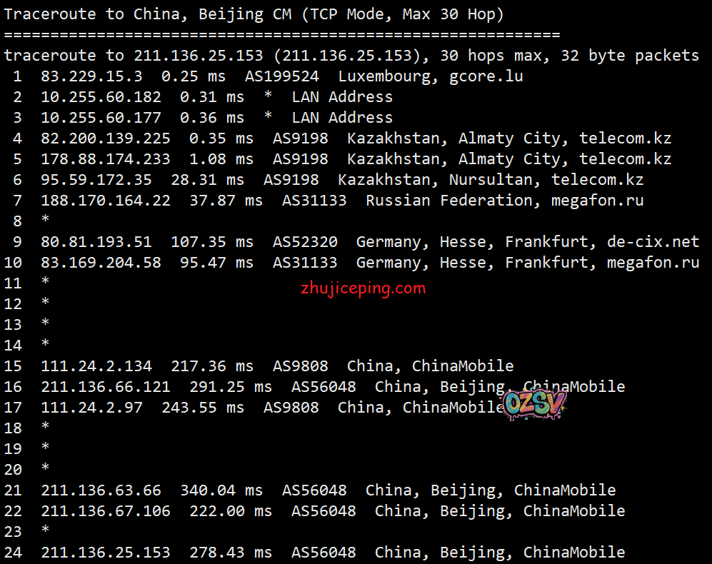 总结下:联通去程和回程的效果都可以,电信去程绕道、回程不错,移动去和回都不行;相对来说,如果不是必须要选哈萨克斯坦的机器的话,尽量不要选。直接买俄罗斯的,对哈萨克斯坦境内来说效果也是很好的。