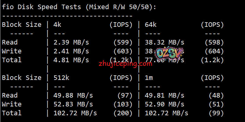 貌似看起来FIO测试的I/O也比较低,看来云服务器的I/O普遍不如普通VPS啊: