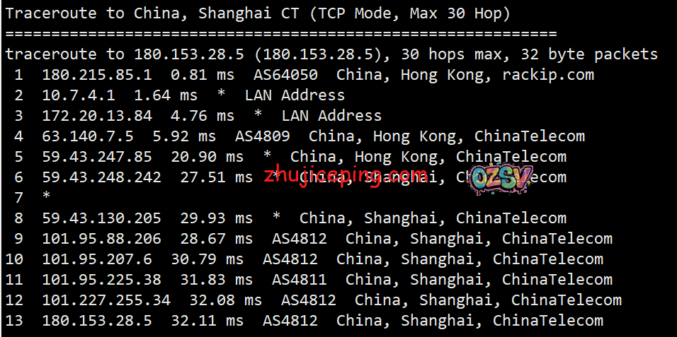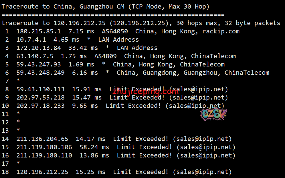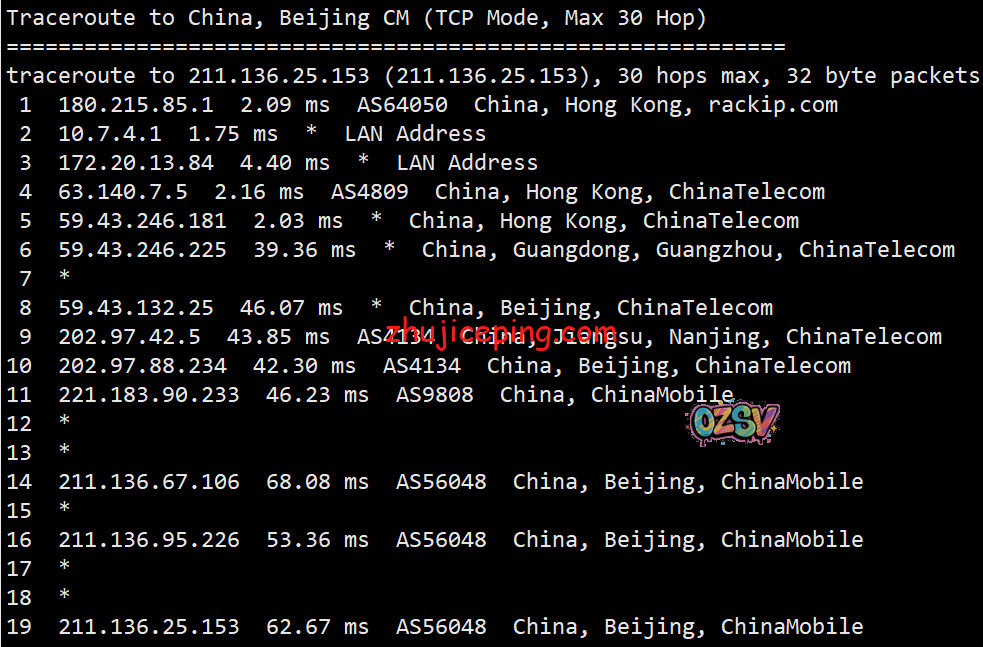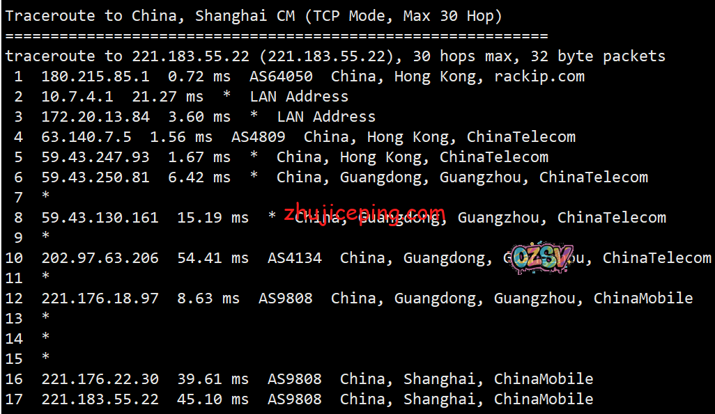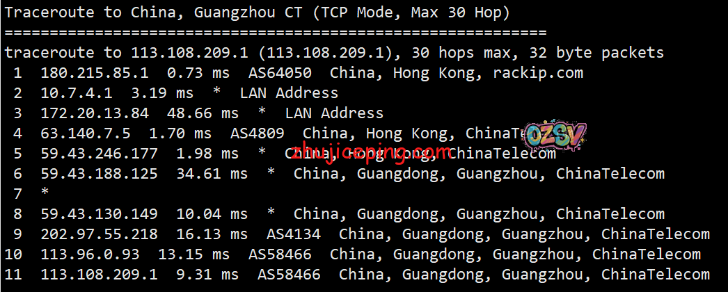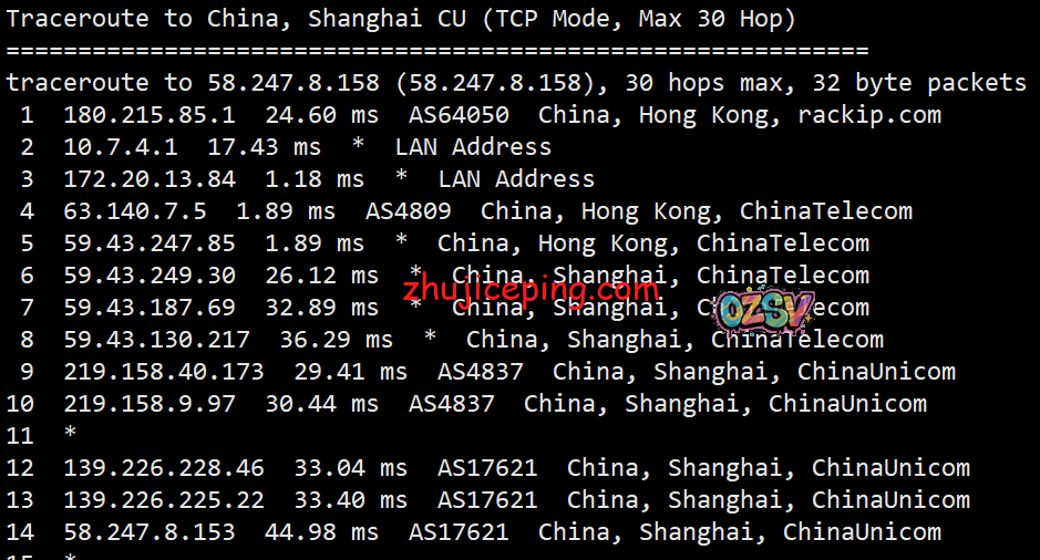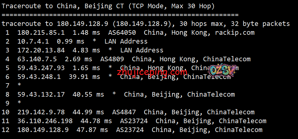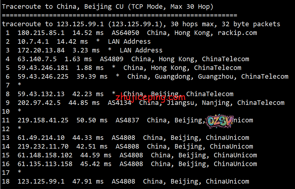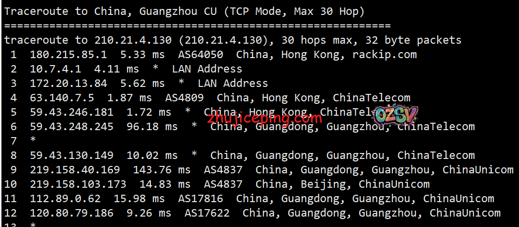 回程,到大陆联通:全部都是走的电信CN2链路回来