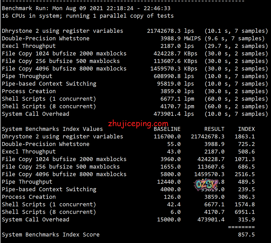 最后丢个Unix bench,没有多大意义,凑数用的: