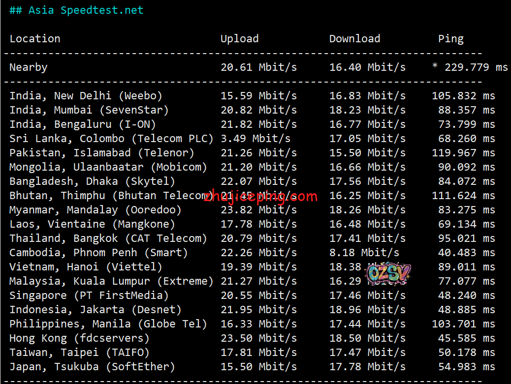 speedtest亚洲区其他节点的效果也是非常不错的: