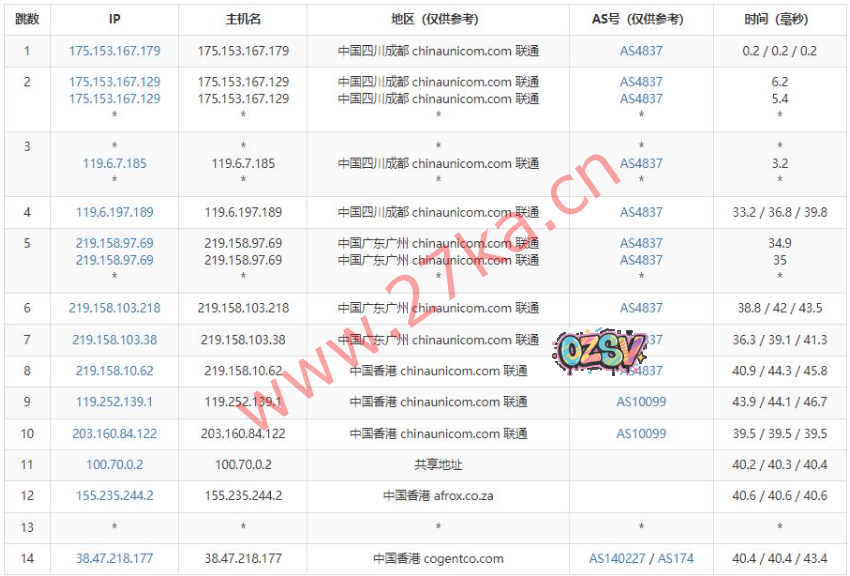 联通去程路由是从广州网口出去,然后直连香港机房,走的是AS4837线路。