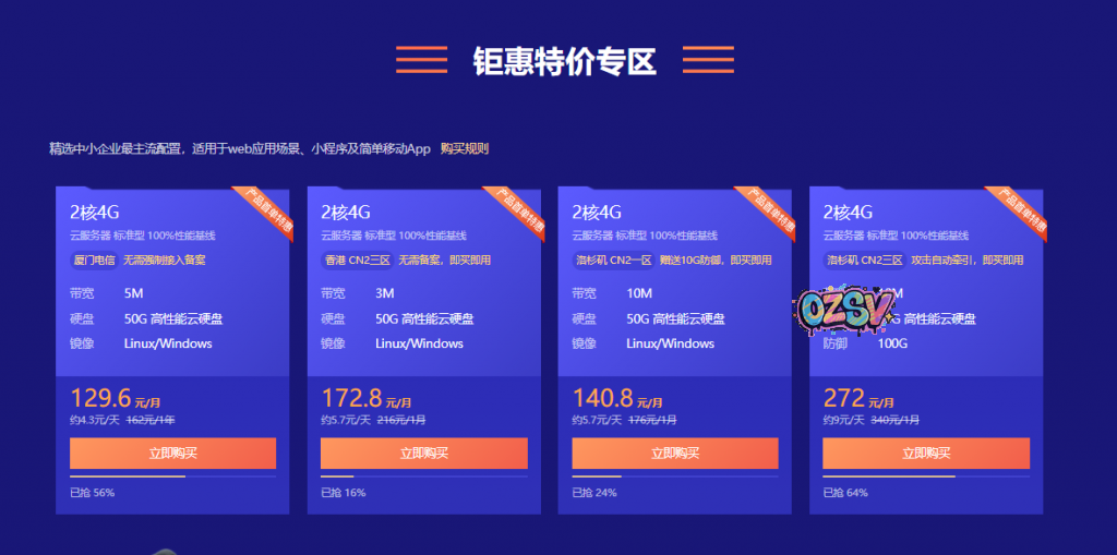 高防专区主要以高防为主,节点有宿迁,绍兴,成都,宁波等,节点挺多,都支持防火墙自助控制。续费同价以下专场。