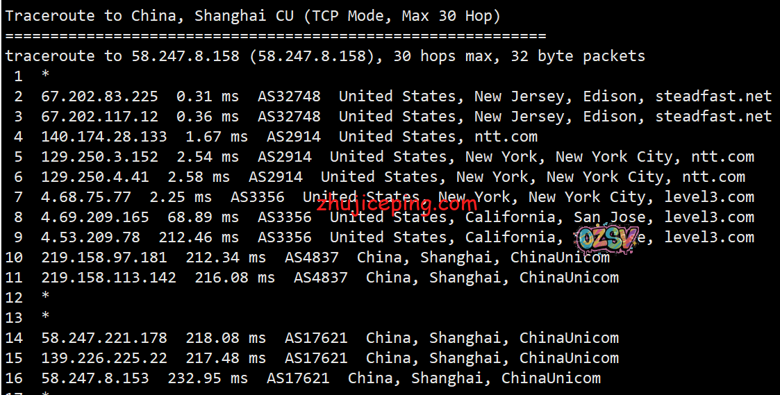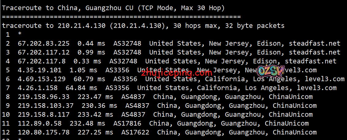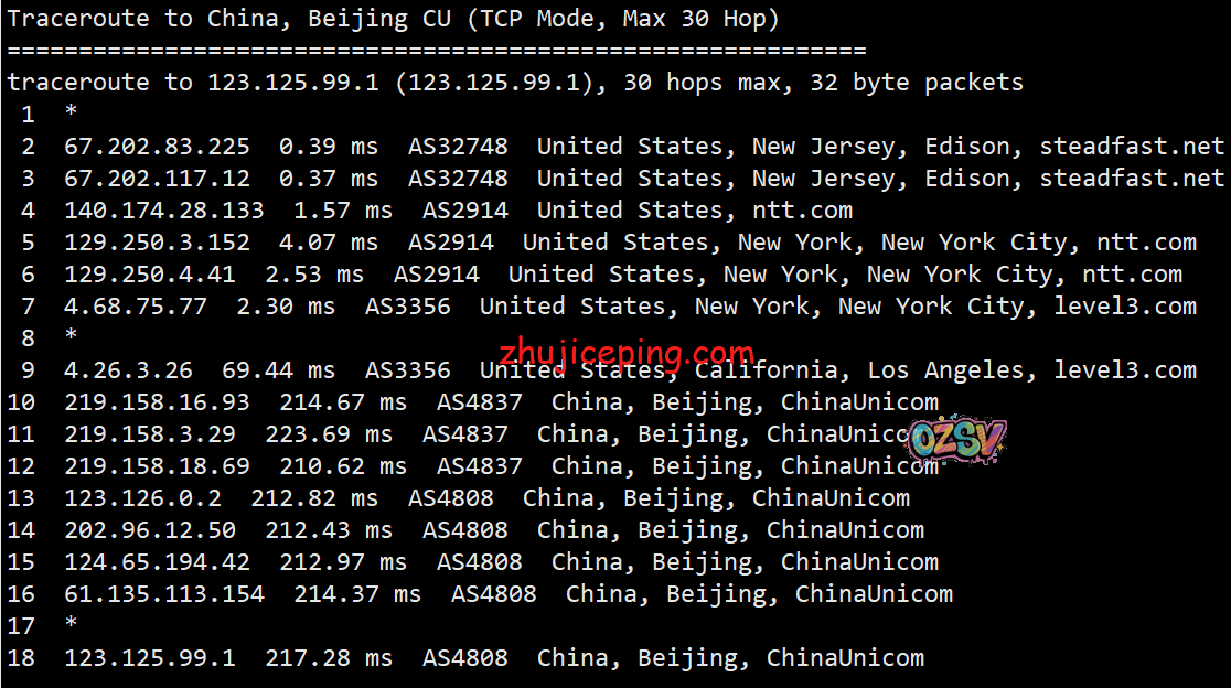 回程,到国内联通:从洛杉矶或者圣何塞走LEVEL3对接联通AS4837回来