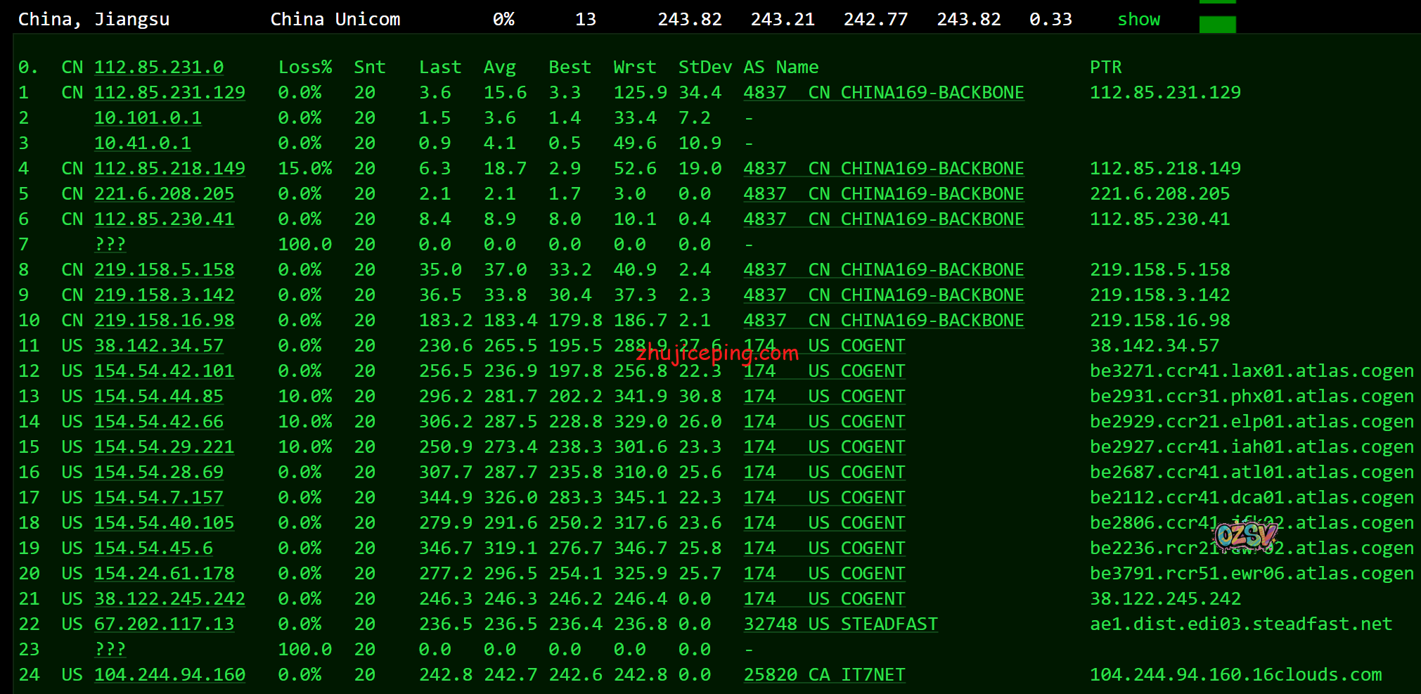 联通去程,骨干网接cogentco: