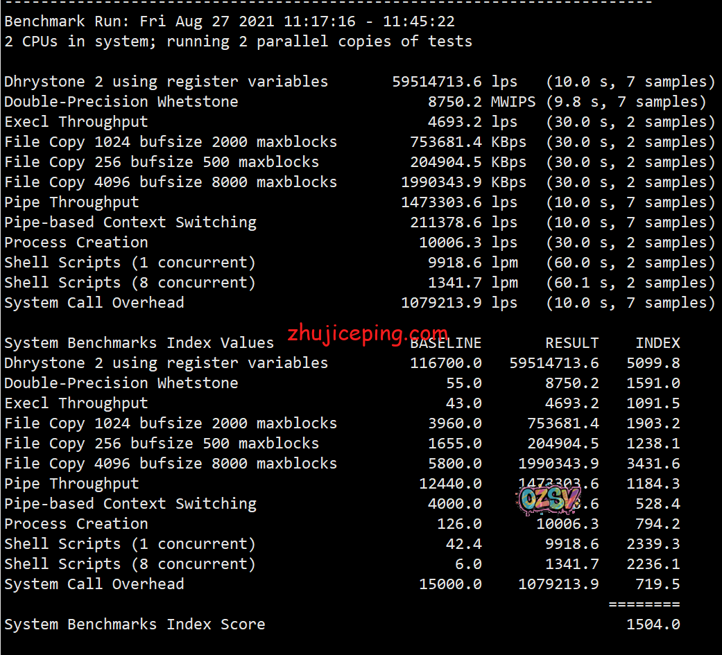 最后Unix bench,跑分不算差吧: