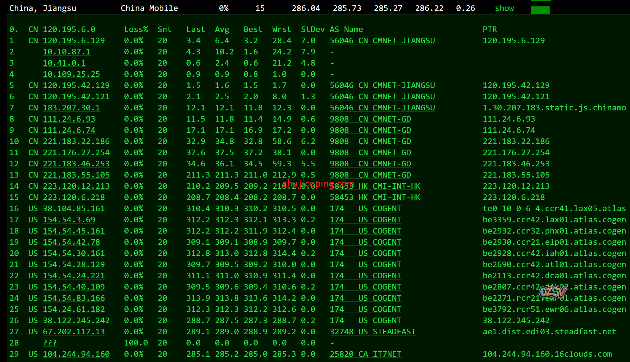 移动去程,CMI接cogentco: