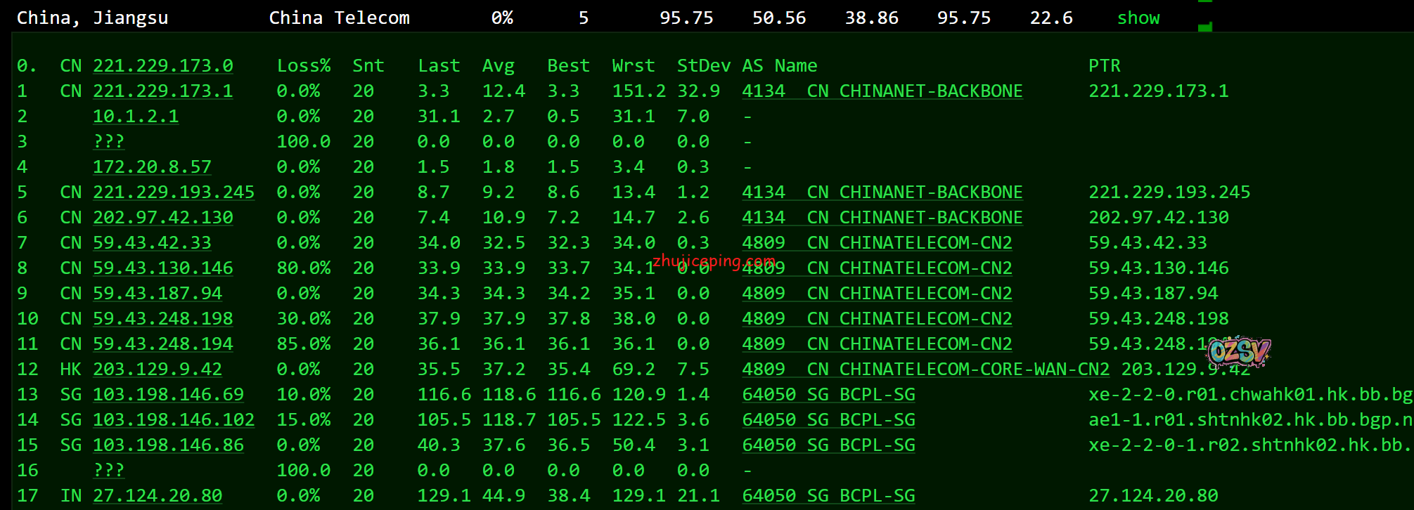 总结下:回程,三网走CN2;去程,电信和联通都是走CN2,移动走CMI;这就是说基本上是三网双程CN2。