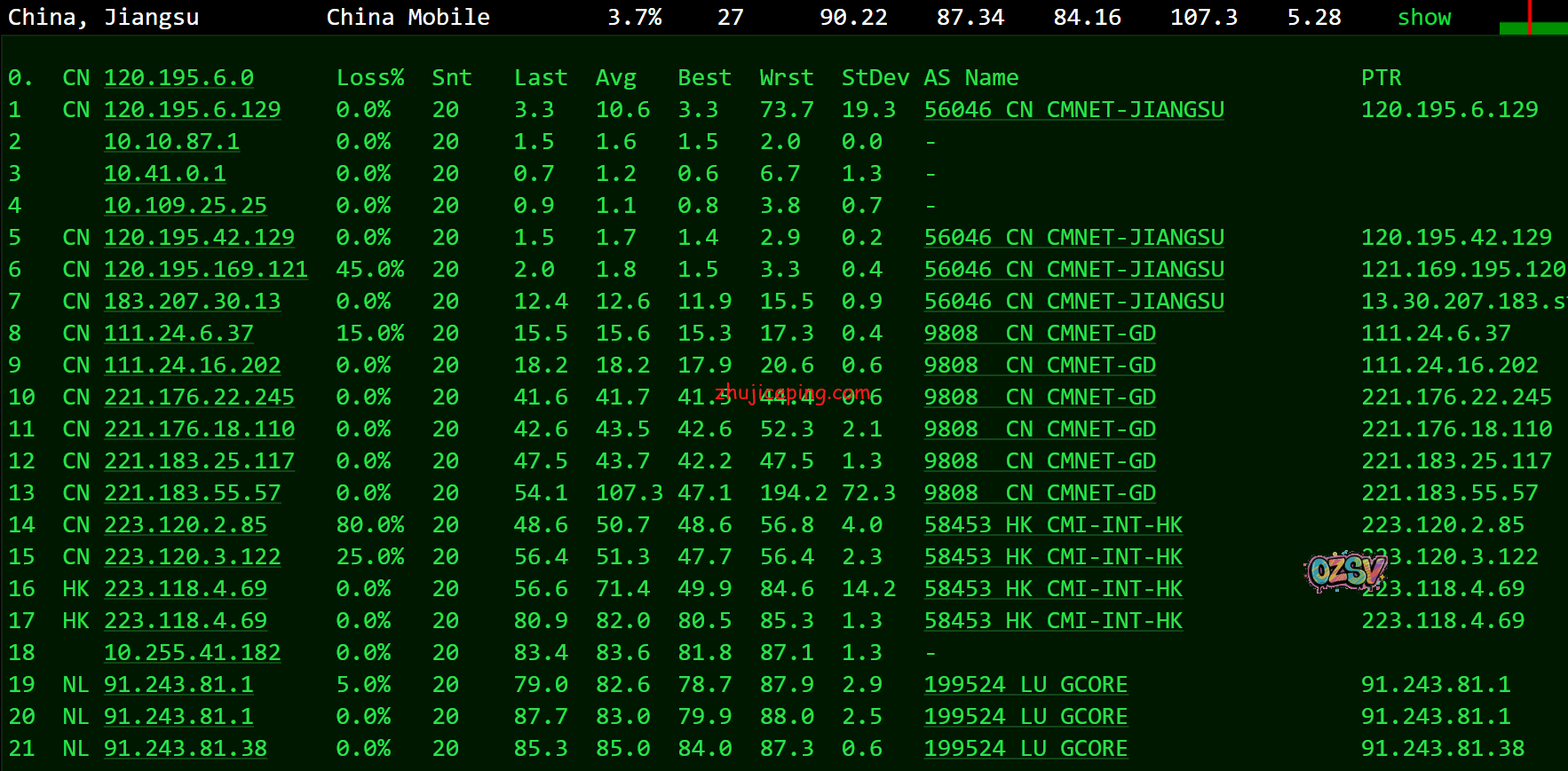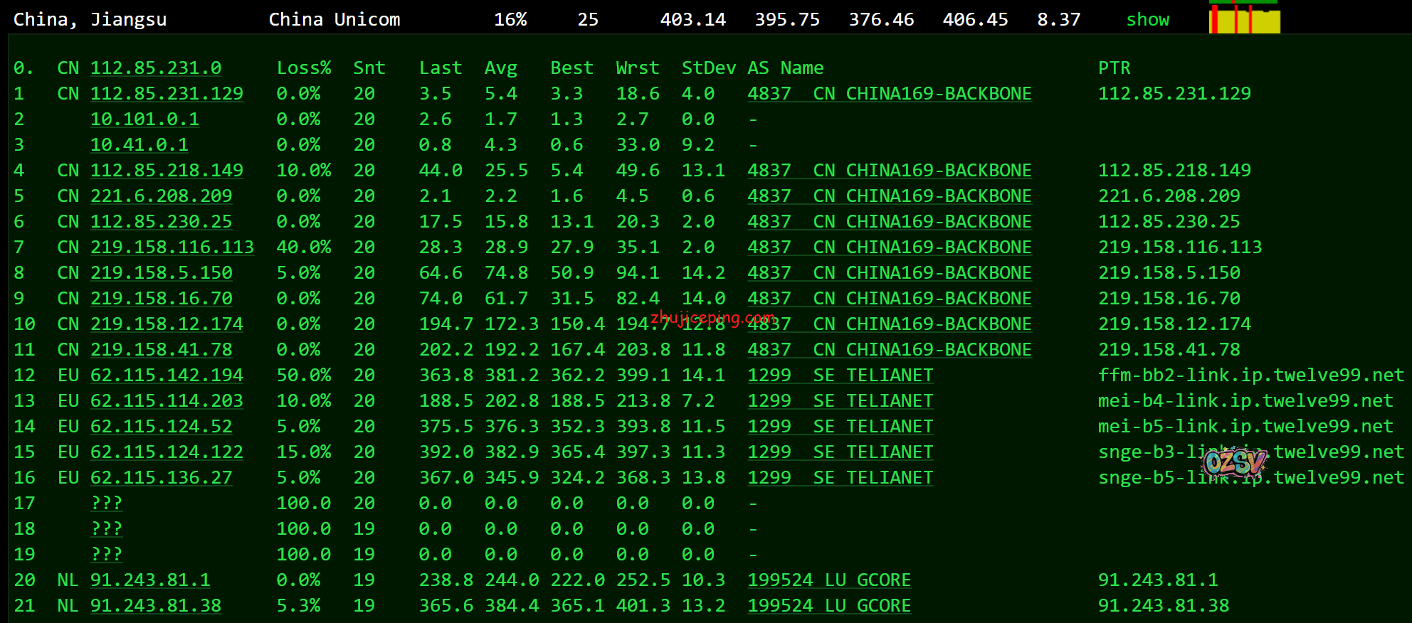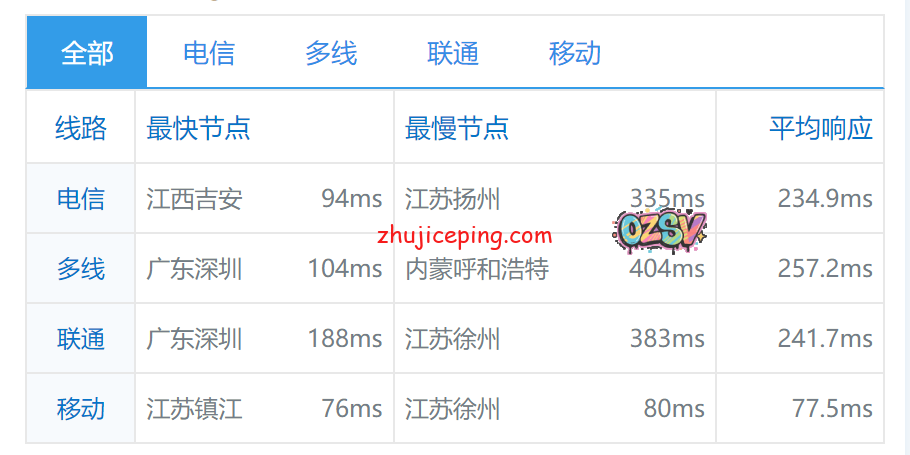 国内ping.chinaz.com提供的80个节点的测试数据: