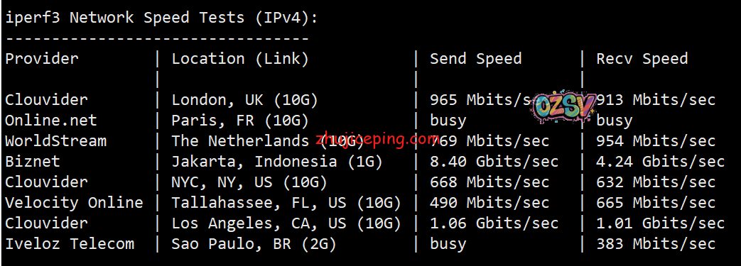 iperf3,印度尼西亚上行可以有8.4Gbps,下行4.24Gbps,美国上下行都超过1Gbps: