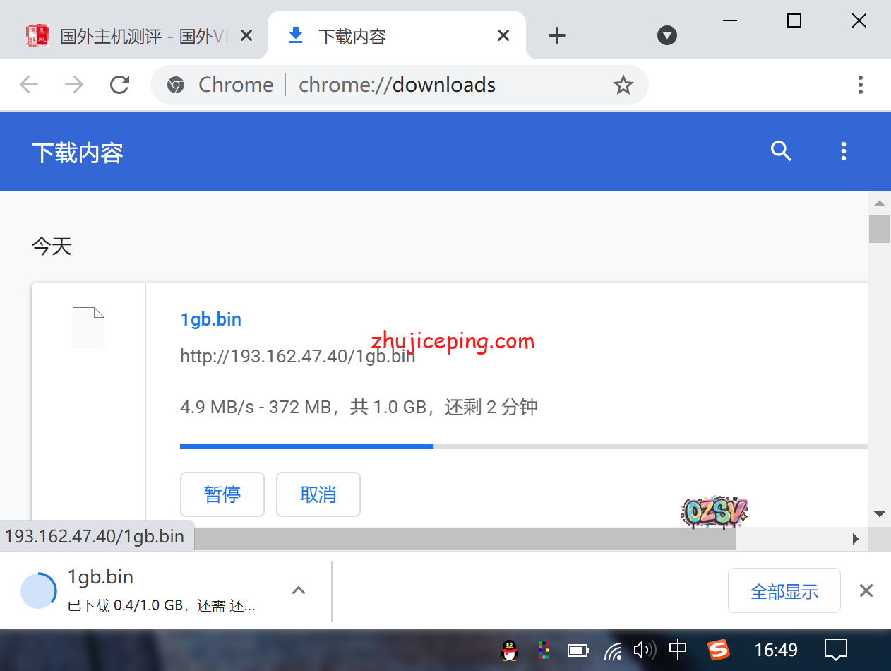 下午四点多,广州电信,直接下载VPS上的文件,速度在4.9MB/s左右:
