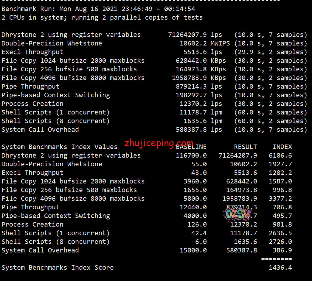 最后看看Unix bench跑分吧: