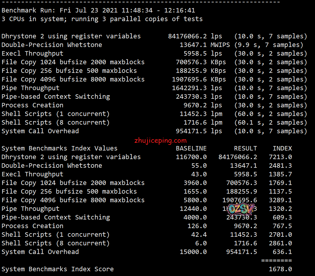 测试用的VPS的CPU是e5-2695v2,3核,2G内存,40G SSD,站长开启了BBR,硬盘I/O大致在434MB左右: