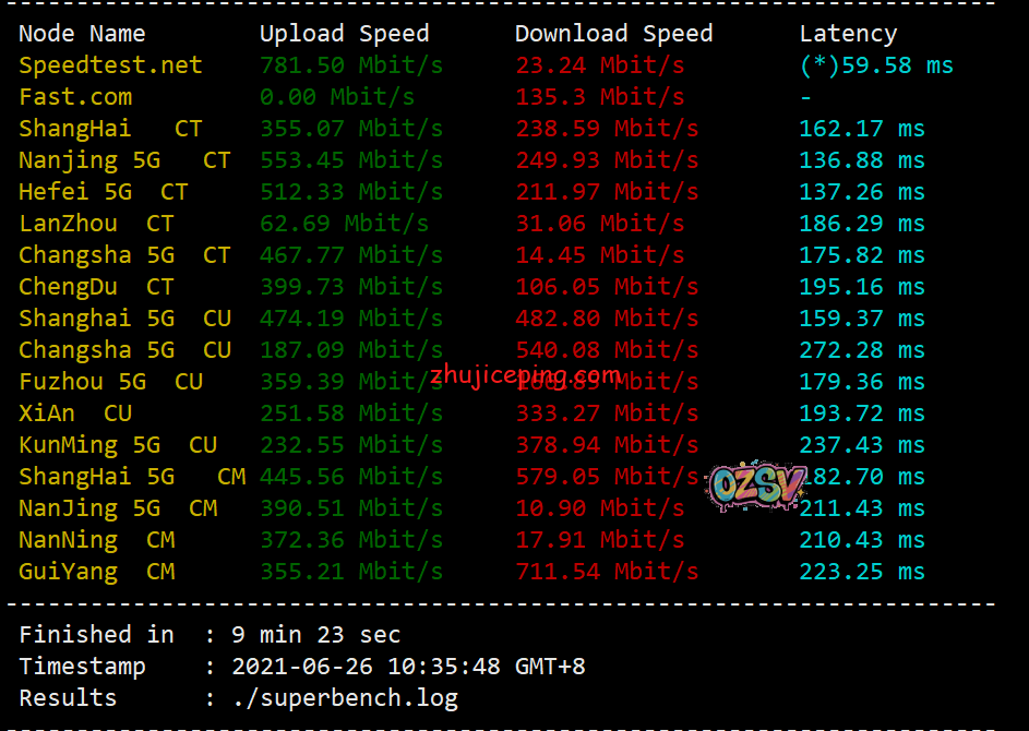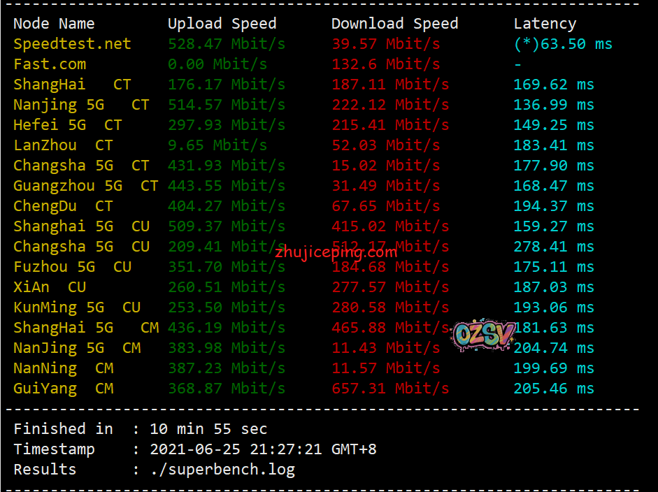 都说晚高峰爆炸,用speedtest.net的国内节点跑一下,看看上行带宽和下行带宽的数据,从上行来看,三网也能跑个三四五百Mbps,大家注意一下,分别是晚上和白天的测试结果: