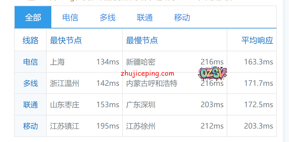 ping.chinaz.com 提供的国内超过80个节点的ping测试数据: