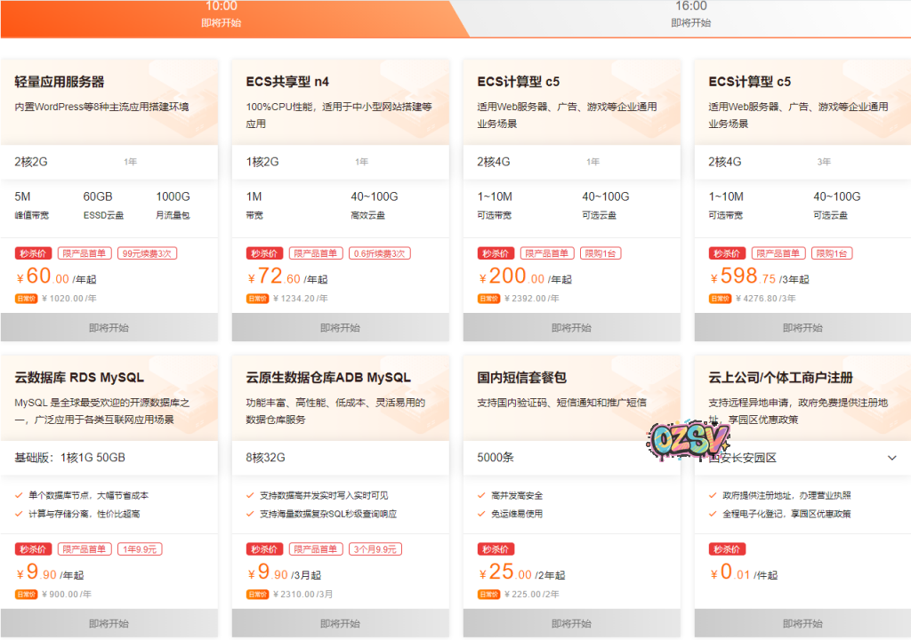 部分活动机型如下图,比如轻量应用服务器,2核2G套餐,5M带宽,首年60元,还可以99元续费3次,还是相当划算的。