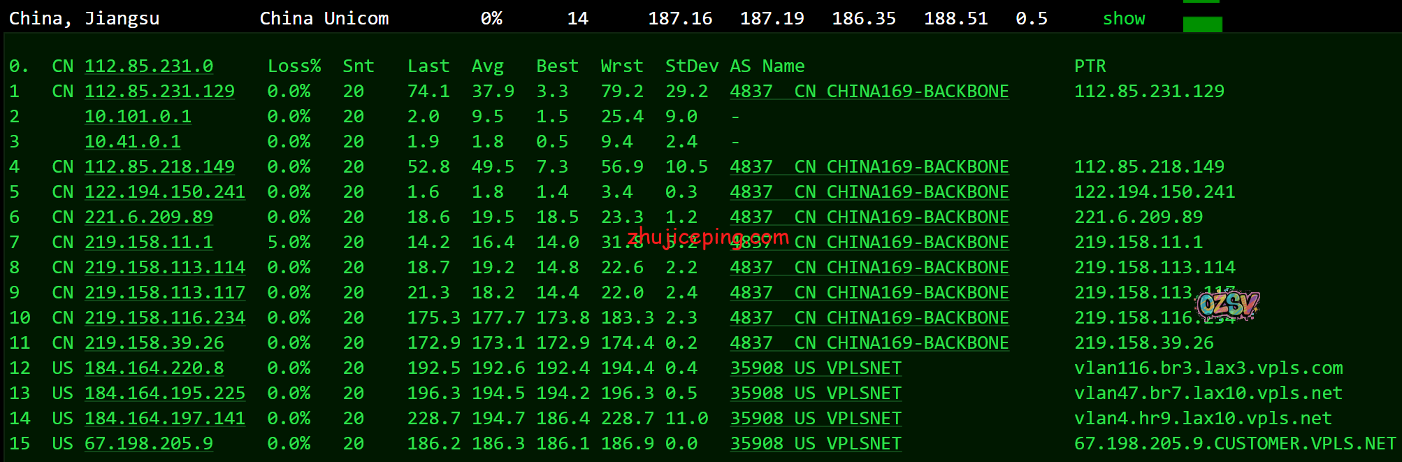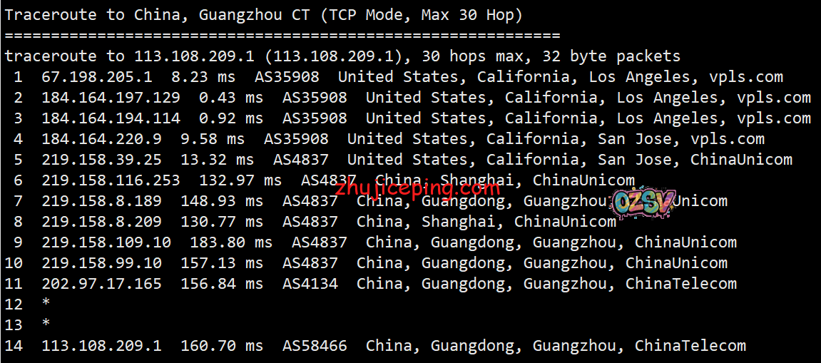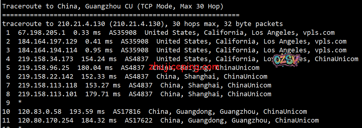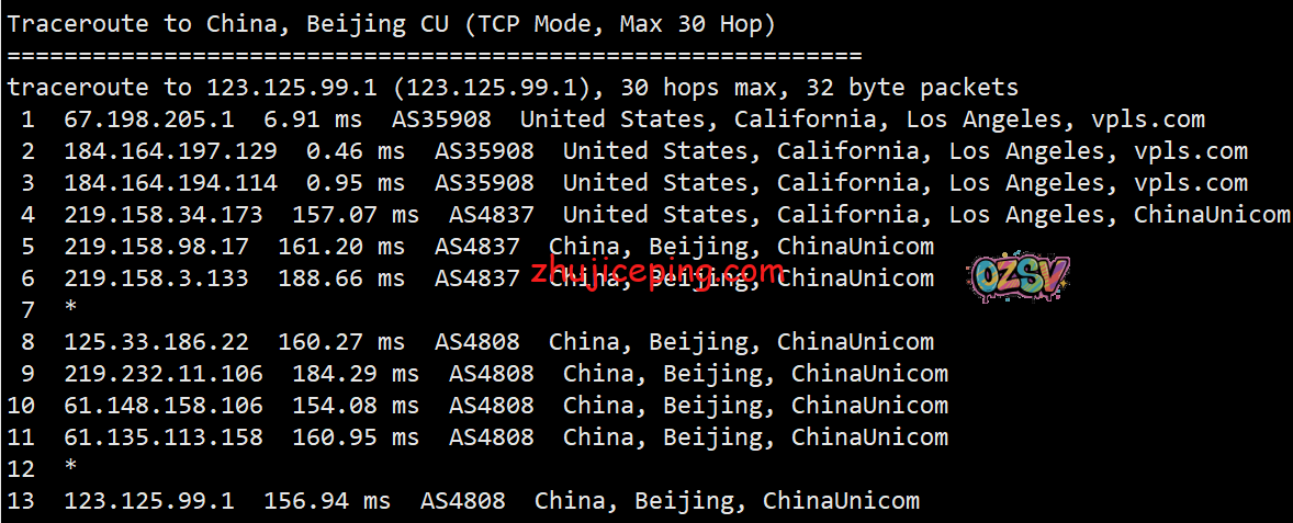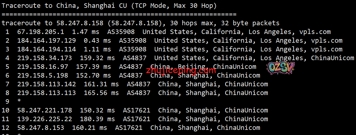回程,到国内电信: 从洛杉矶机房出来到圣何塞,然后从联通AS4837链路回国