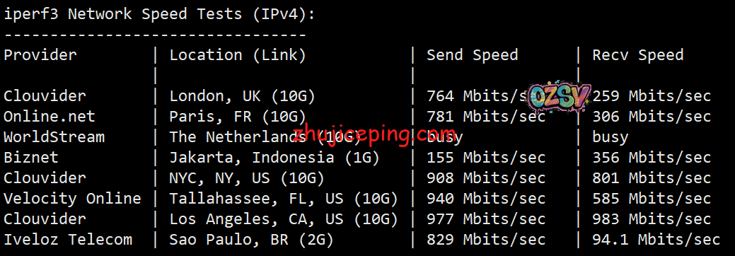 我们来做个对比,下图是第二天白天,也就是闲暇时段,我们继续看中国国内的speedtest的测试效果: