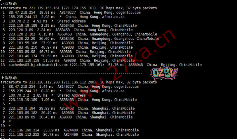 所以总结下就是:电信双向CN2,联通双向AS4837,移动双向CMI