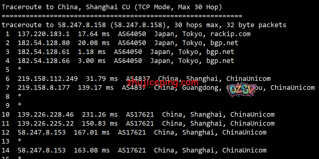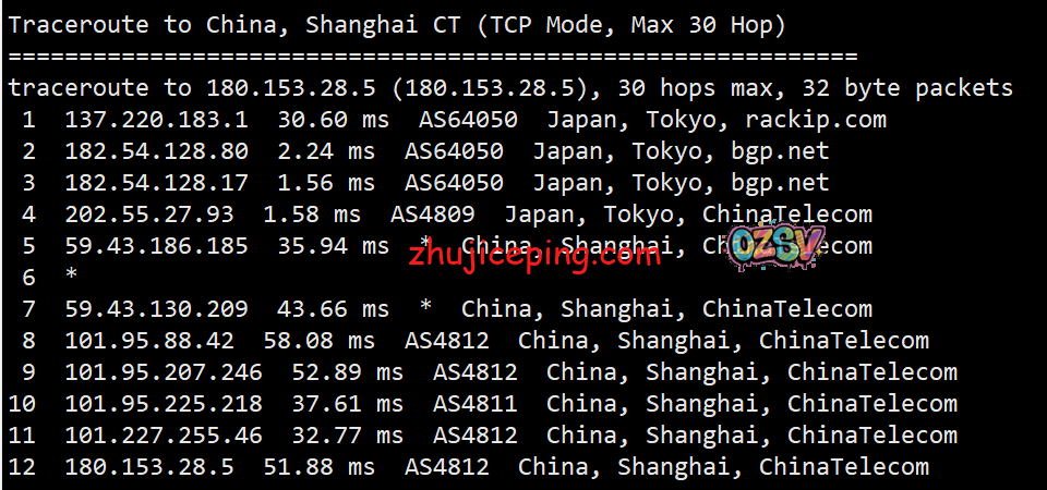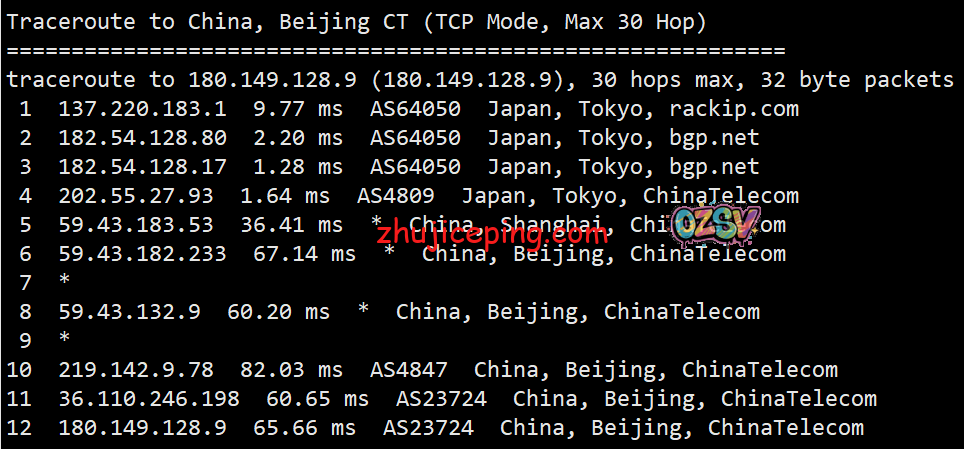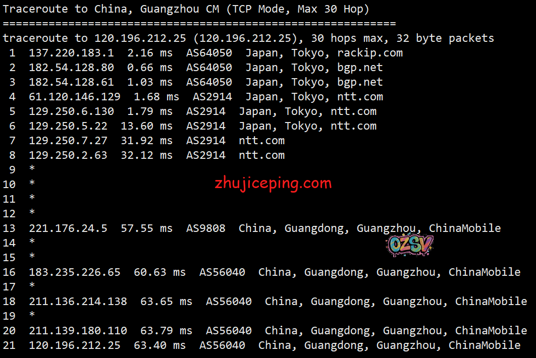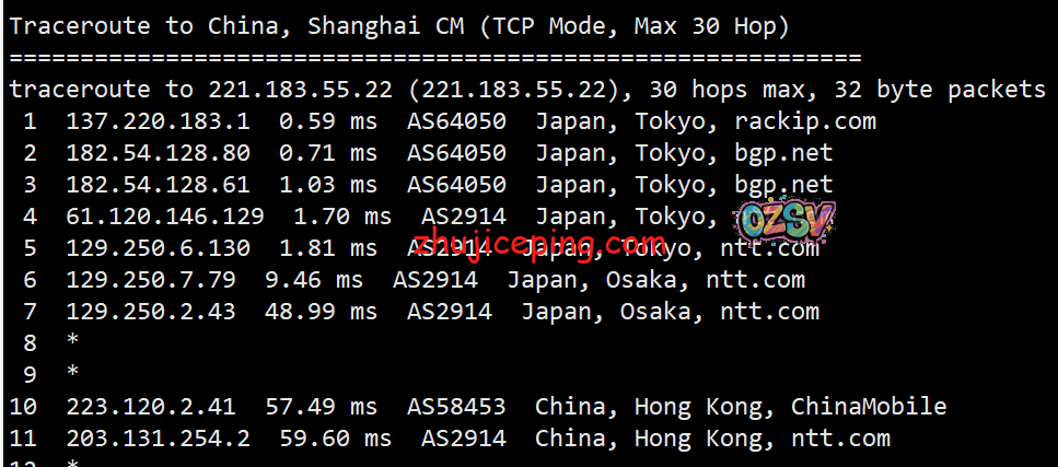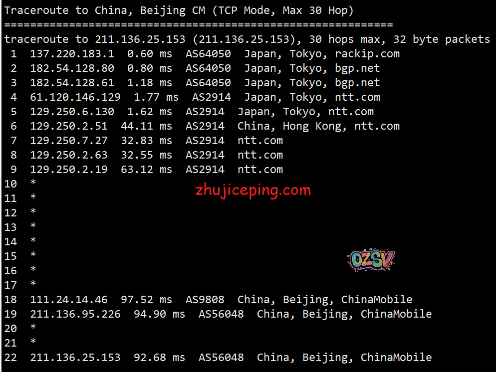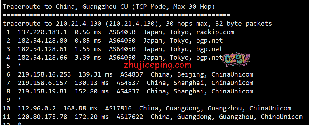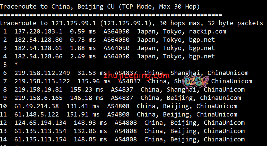 先说回程,电信回程走CN2、联通是VIP(as4837)、移动是NTT出机房到香港然后回内地