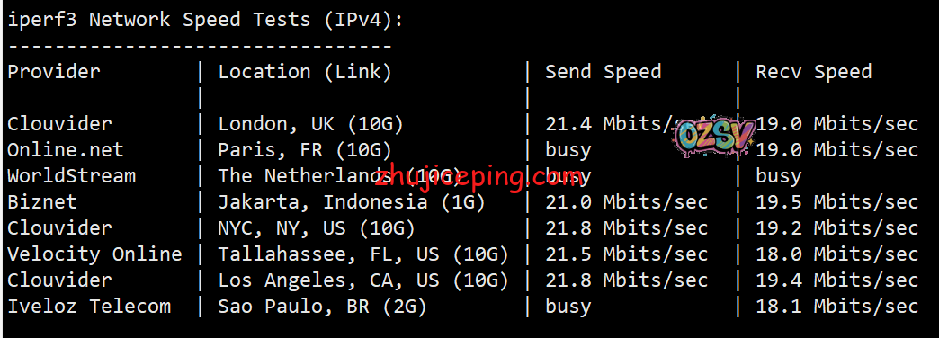 iperf3,跑欧美测试,带宽也能突发跑满: