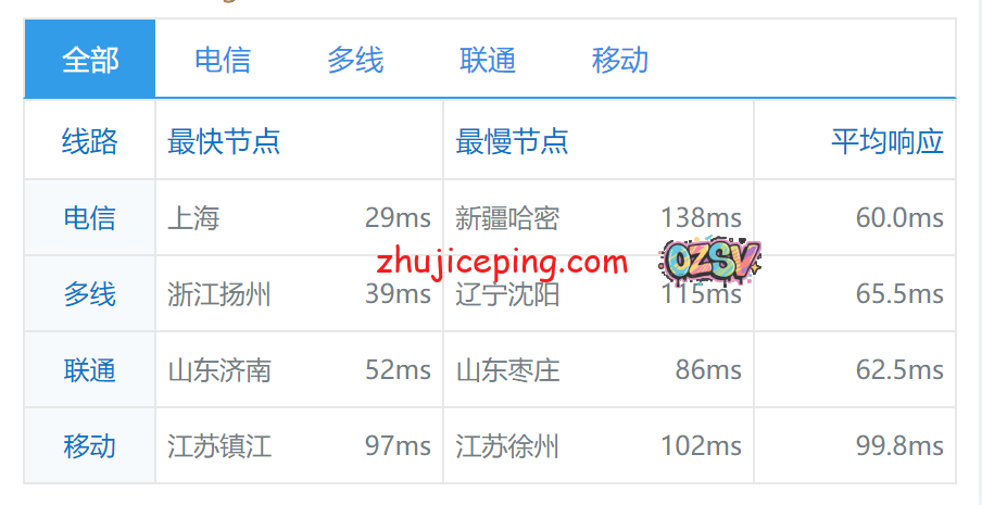 下方是来自ping.chinaz.com提供的国内80个节点的测试数据: