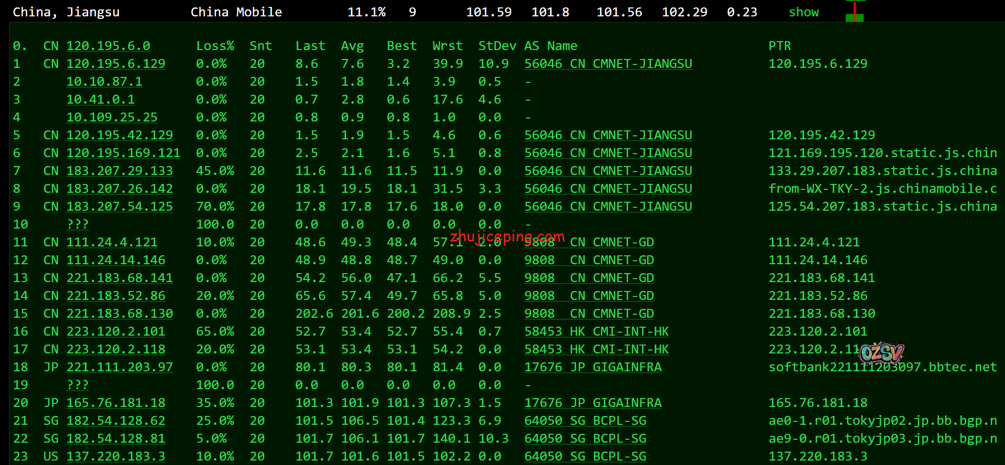 再说去程,电信去是骨干直连、联通是软银、移动是自己的CMI对接软银