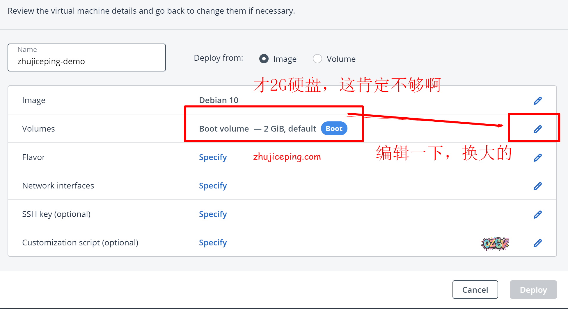 选择完成之后发现硬盘默认太小了,我们返回来编辑下,换大点儿: