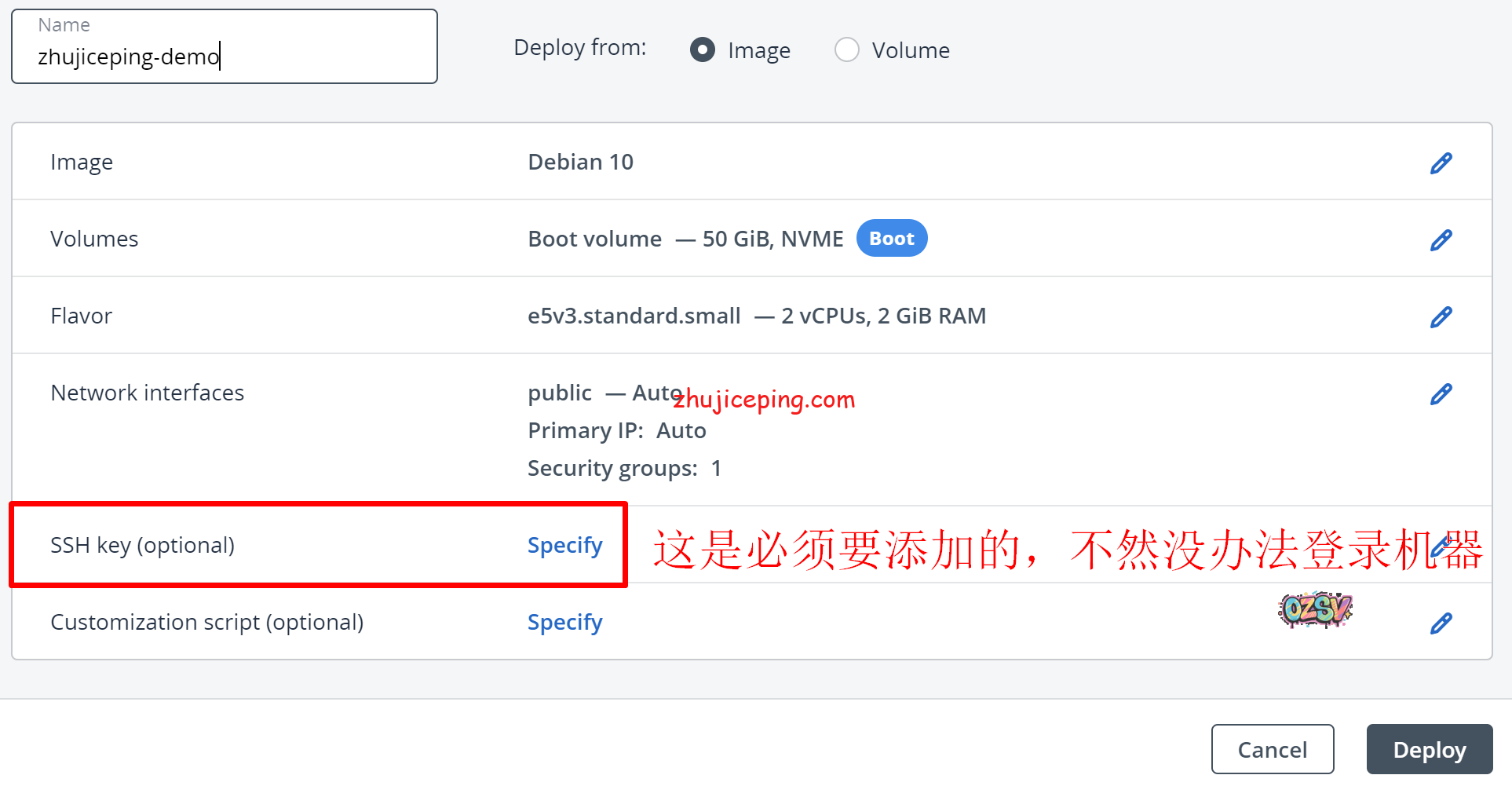 注意,站长选的是debian系统,这个debian系统默认用户是“deian”而不是“root”: