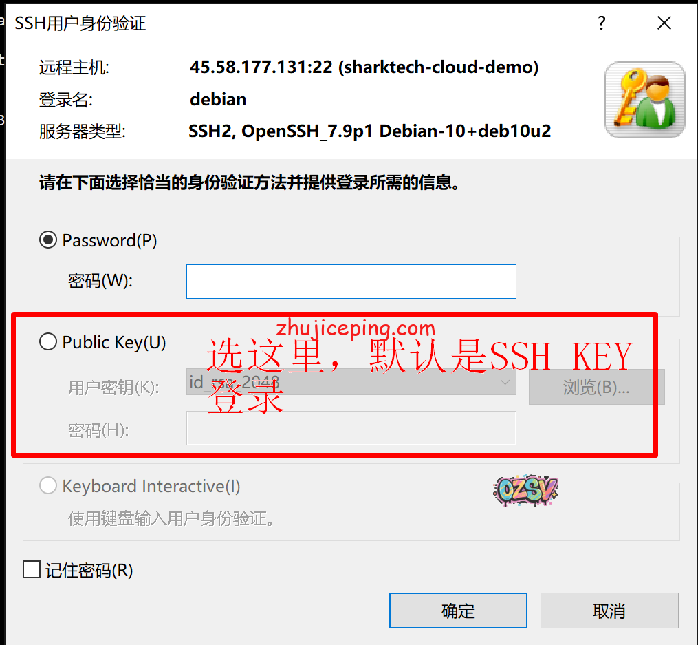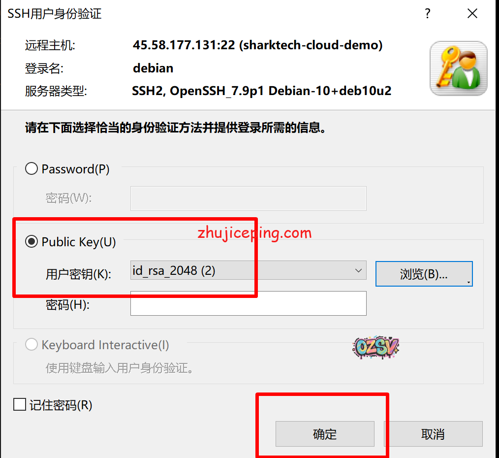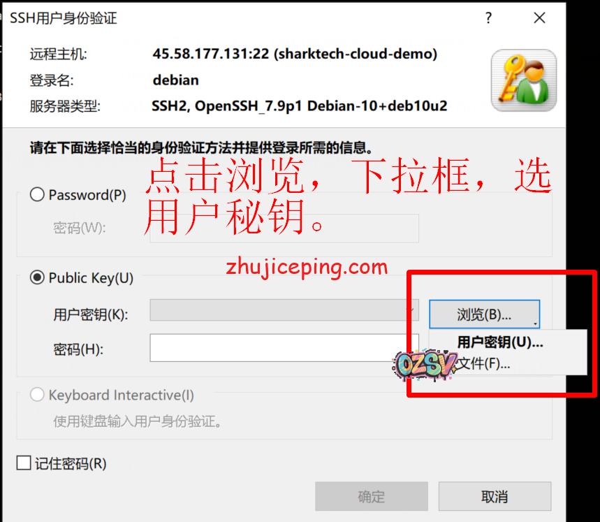 接着我们登陆,选中刚才用XSHELL生产的SSH KEY: