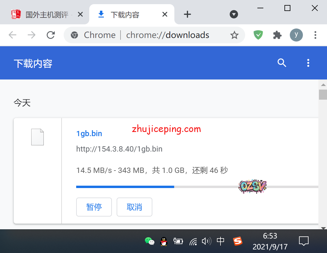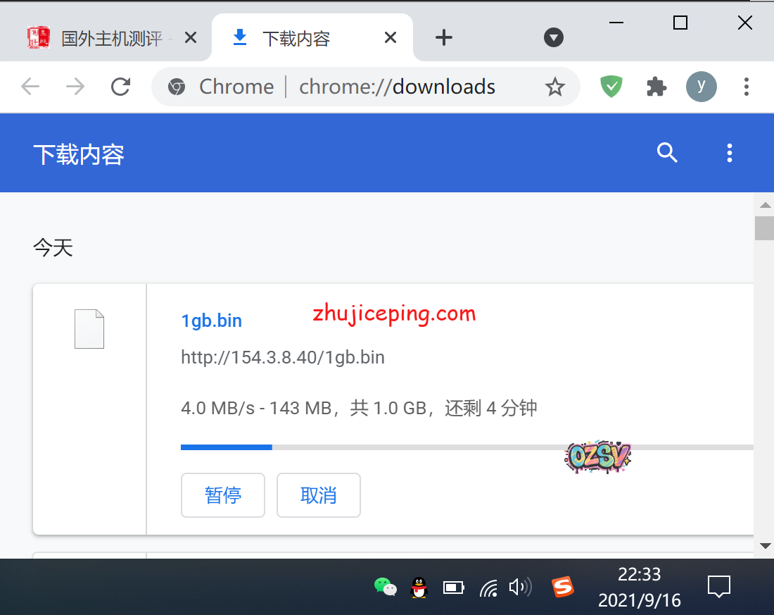 存放在VPS上的文件,广州电信,Chrome浏览器,晚高峰22:33,下载速度大约4MB/S: