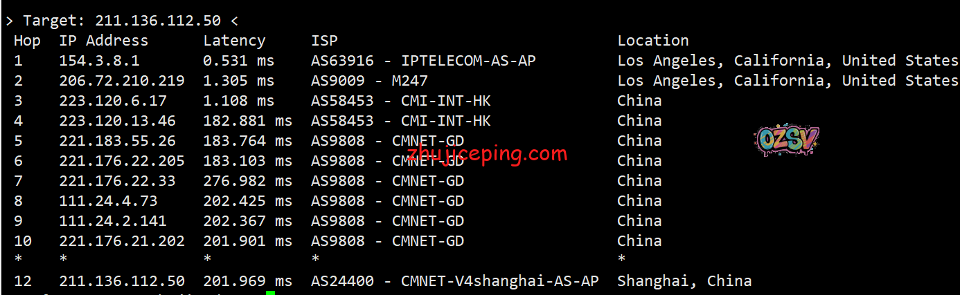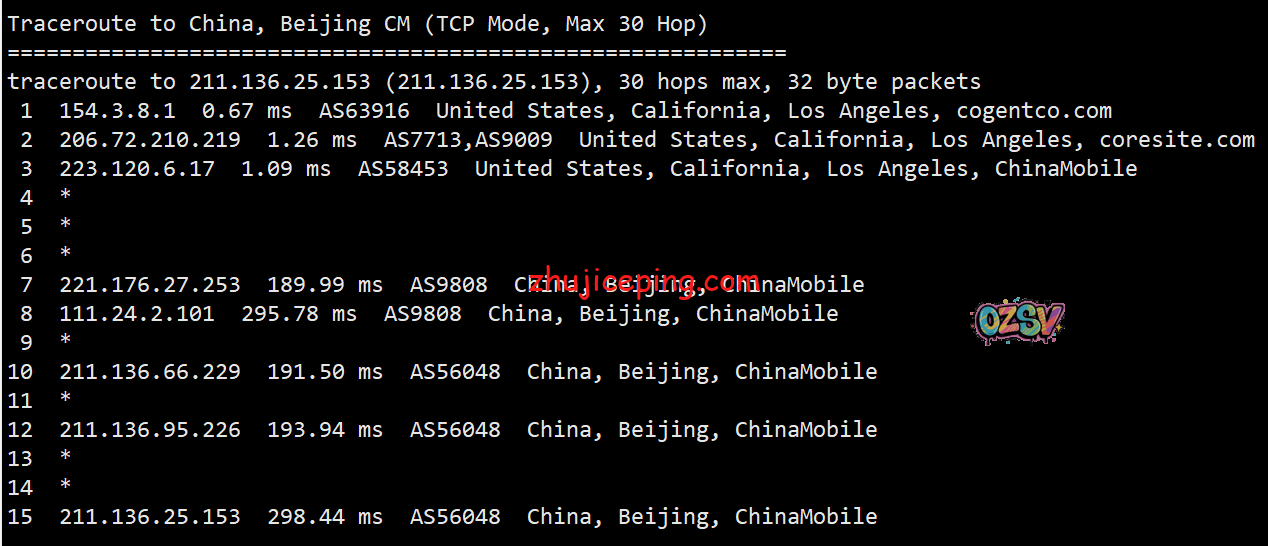 回程,到国内移动:都是从洛杉矶移动节点直接回国