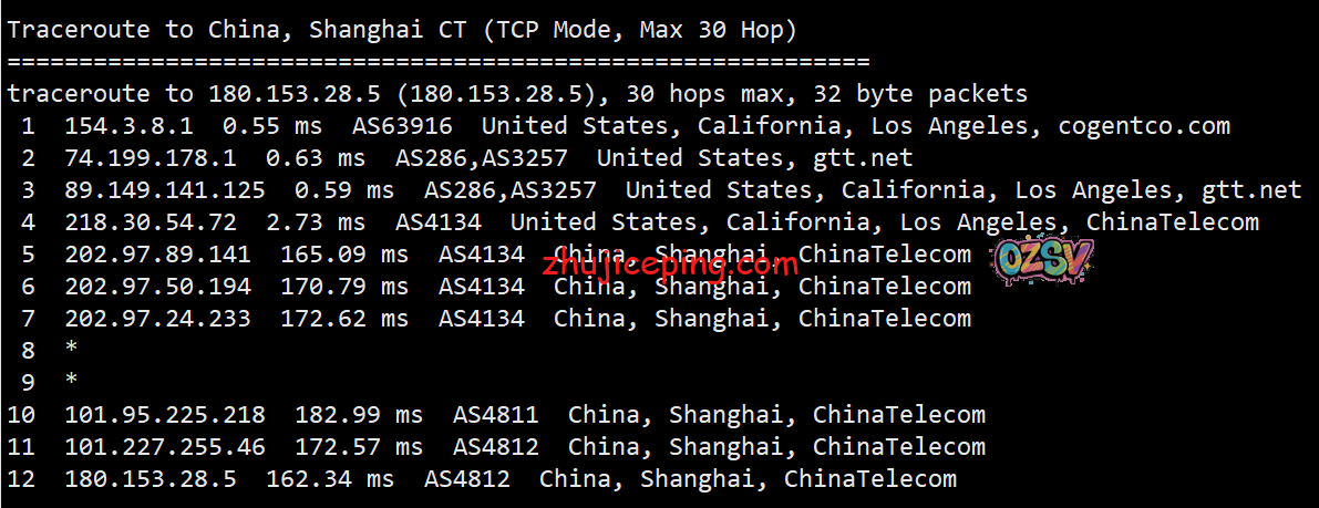 电信去程,骨干网对接cogentco: