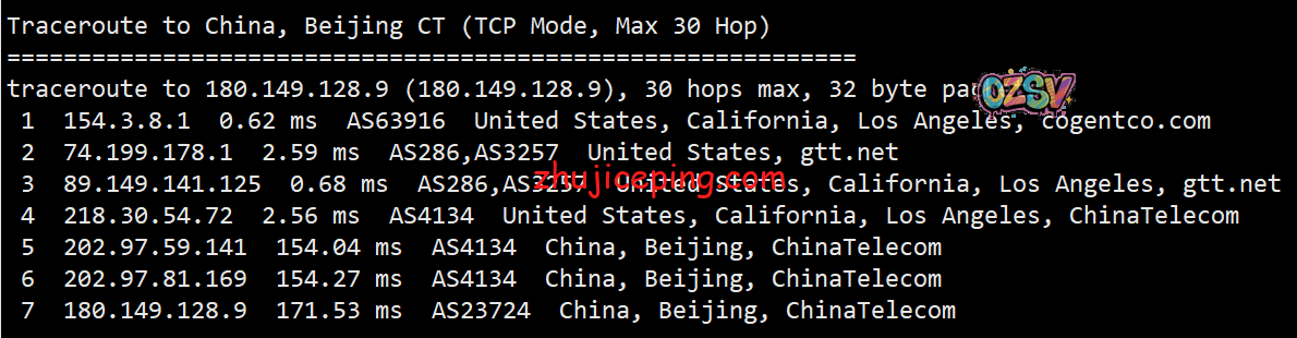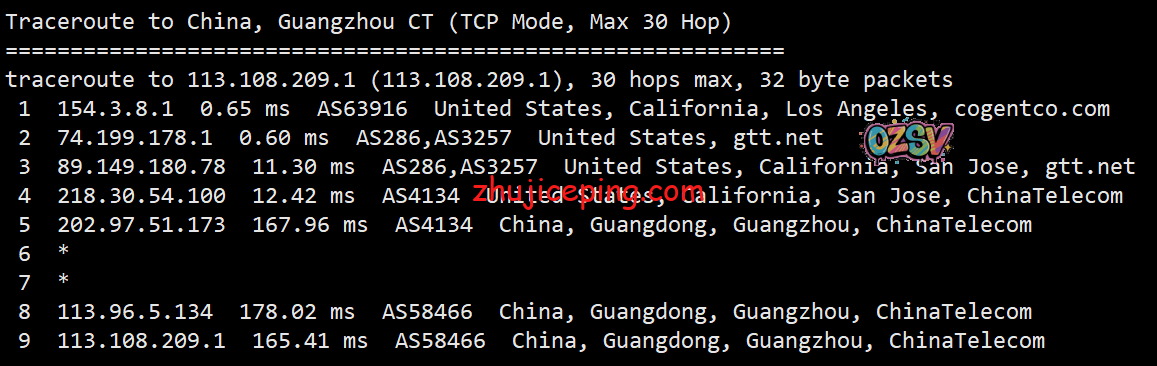 回程,到国内电信:上海和北京方向都是走的洛杉矶,广州方向走的圣何塞;但是都是走的电信在当地自己的节点,直连回国。