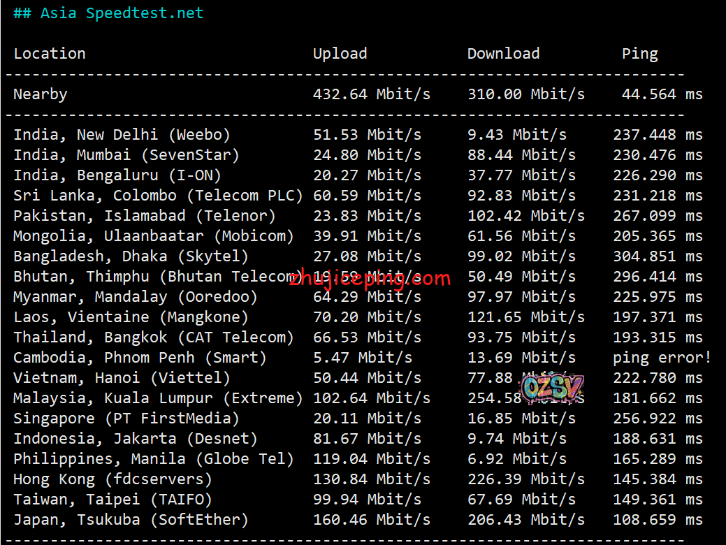 晚上测试的亚洲区其他节点的效果: