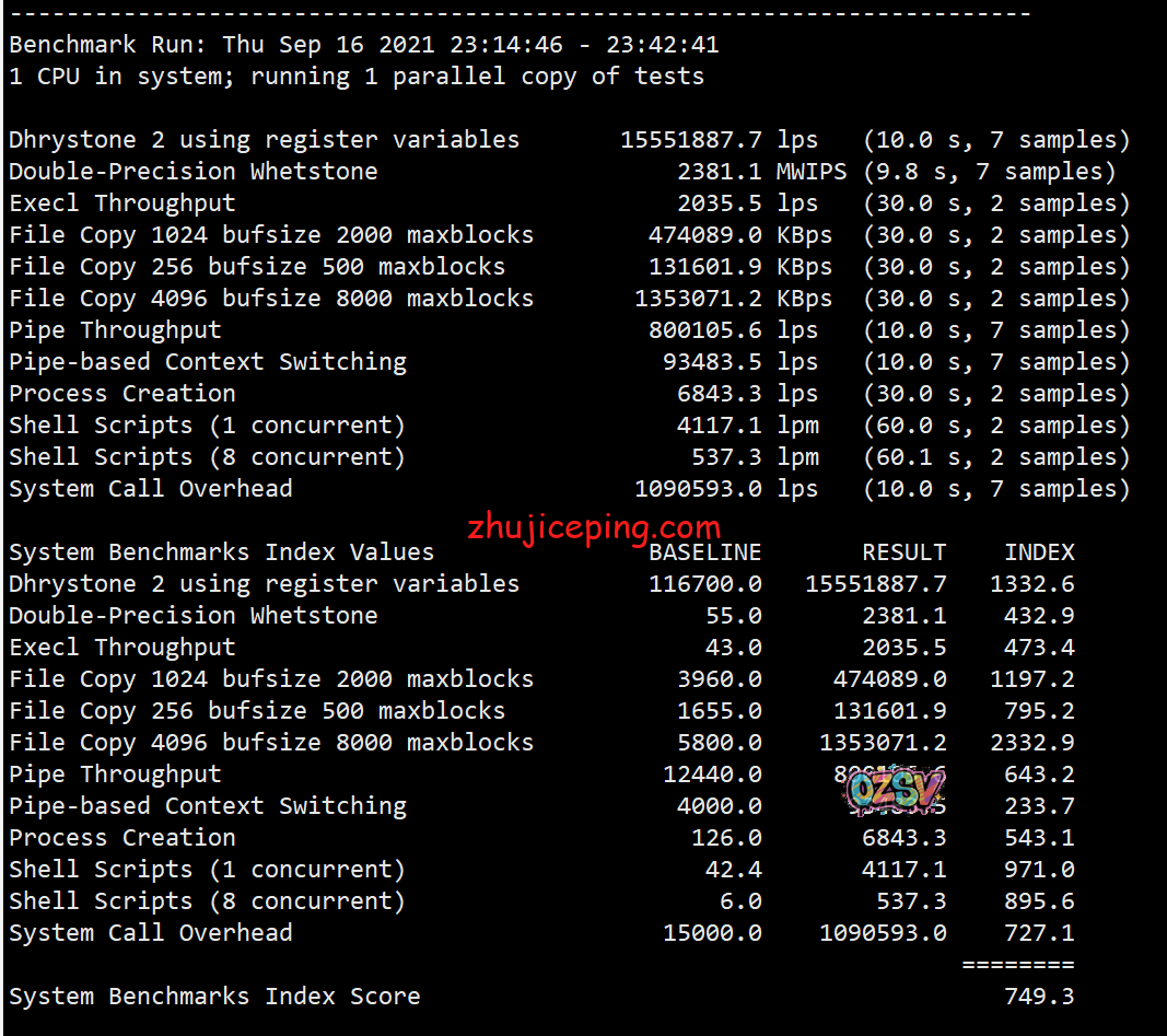 最后丢一个Unix bench跑分,看起来有人在折腾了,分数只有七百多: