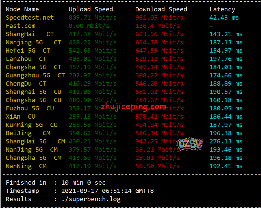 这款VPS在国内网络条件下能跑到多少,这个估计是绝大多数人关注的,speedtest.net国内三网节点测试走起,测试时间晚高峰21:56,如下: