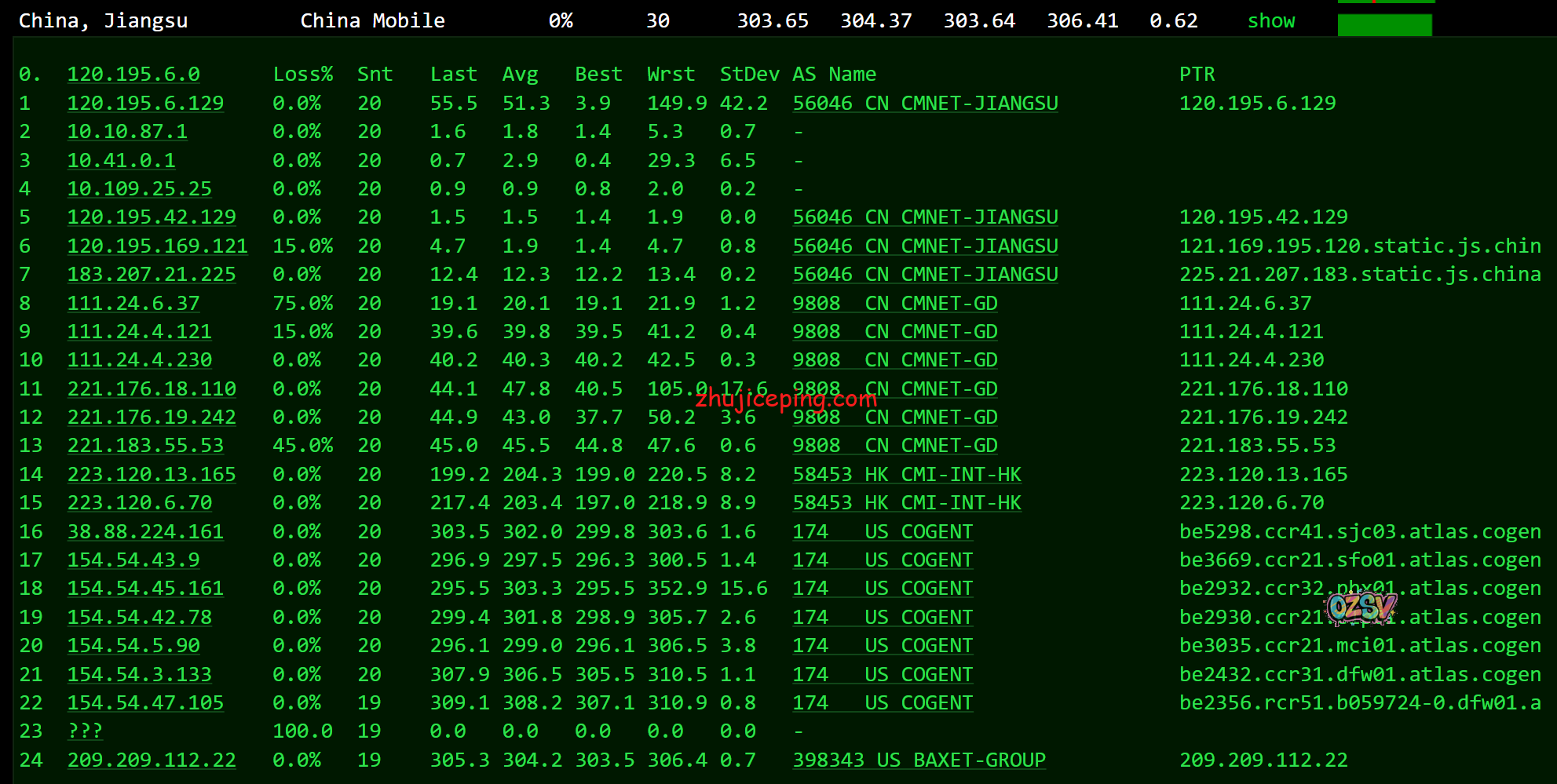 回程,到国内移动(北上广):还是cogentco对接移动骨干网