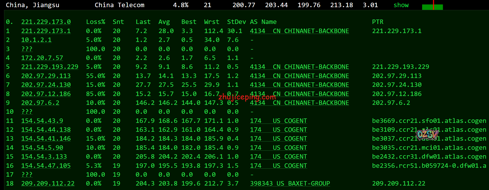 这是一款三网去程、回程都走cogentco线路的VPS;