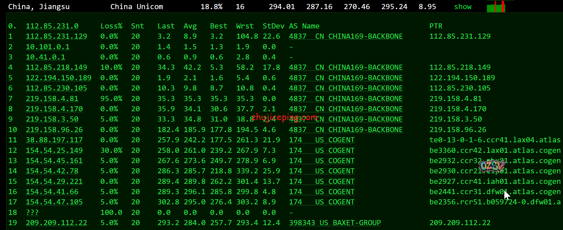 回程,大国内联通(北上广三处):一样也是cogentco对接骨干网