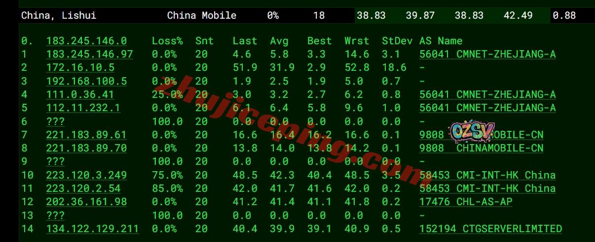 移动去程:移动CMI直连香港